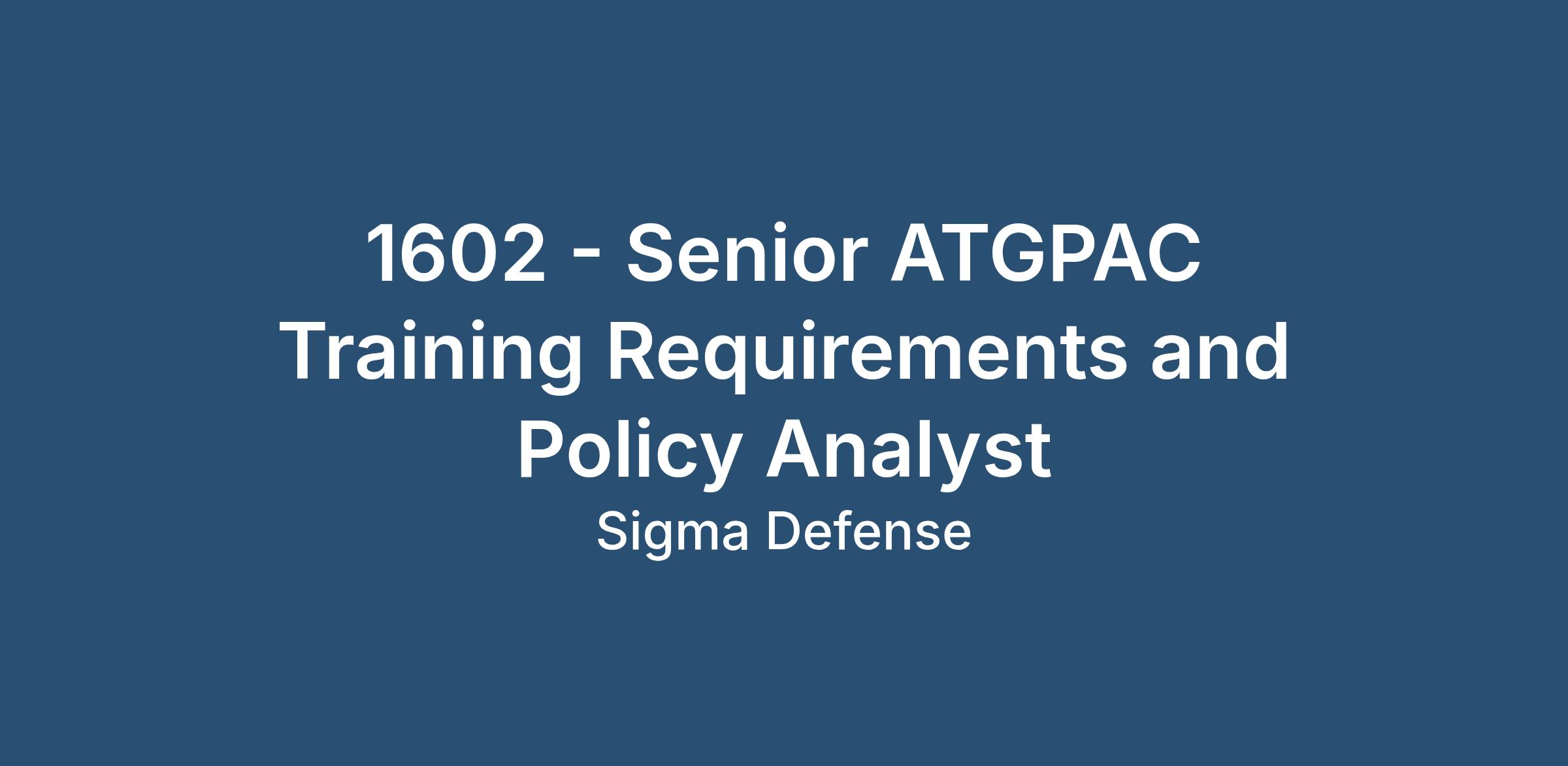 DescriptionSigma Defense is seeking a Senior ATGPAC Training Requirements and Policy Analyst to join our team at San Diego NB, CA.