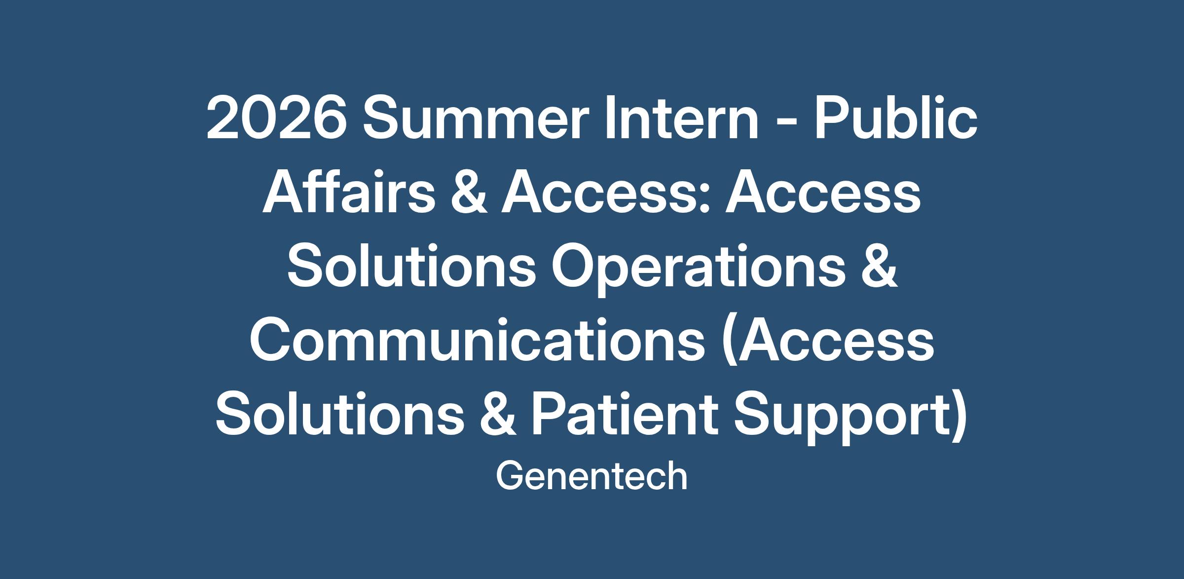 2026 Summer Intern - Public Affairs & Access: Access Solutions Operations & Communications (Access Solutions & Patient Support)