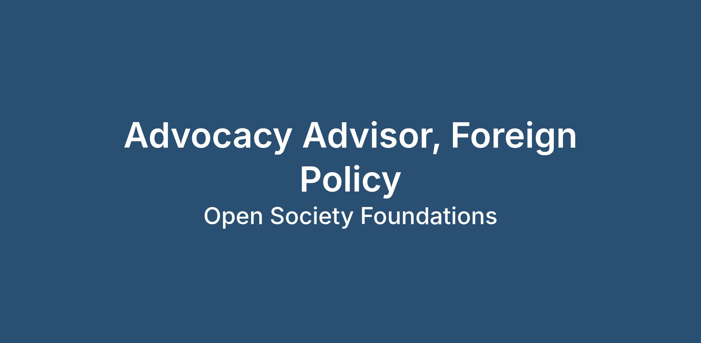 Role Title: Advocacy Advisor, Foreign Policy