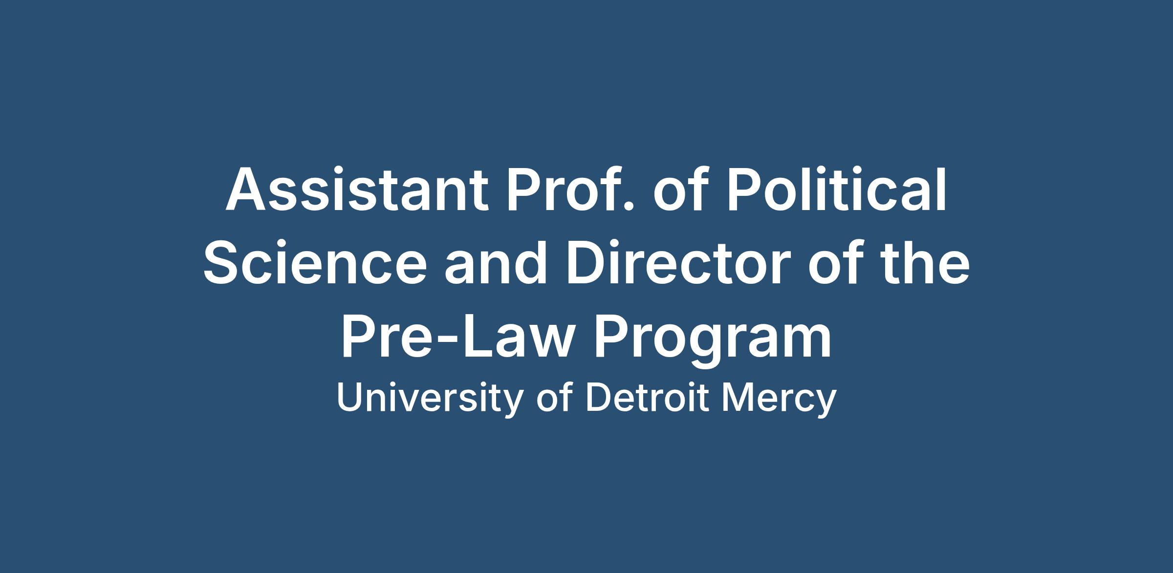 The Department of Political Science at the University of Detroit Mercy invites applications for a tenure-track position at the rank of Assistant Professor in Political Science, with specialization in Legal Studies or Judicial Politics, to begin August 2026.