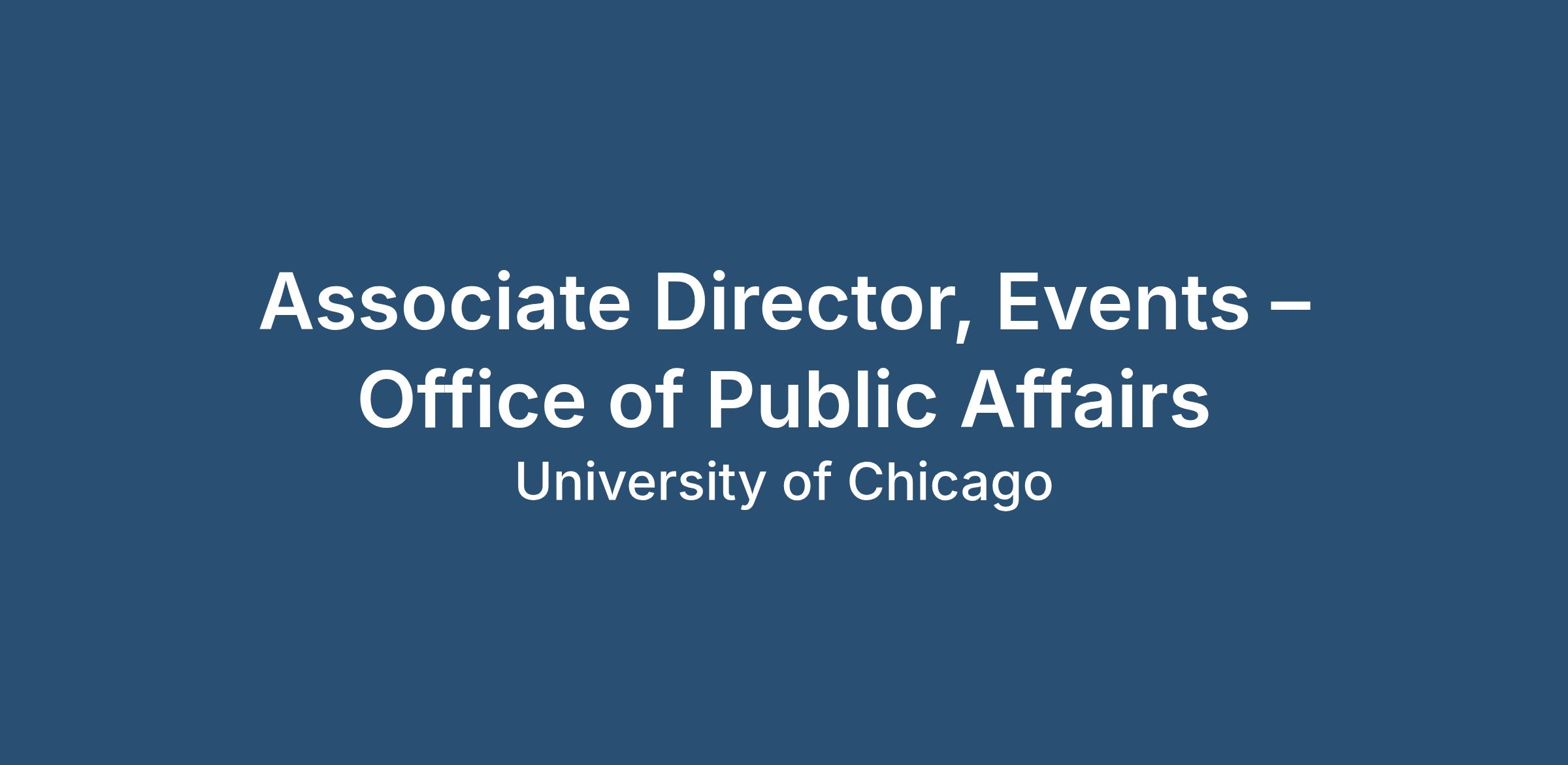 Reporting to the Director of Marketing, the Associate Director, Events is an integral member of the Office of Public Affairs, providing planning and execution for OPA-owned events and select school priorities. The role partners closely with colleagues across OPA (marketing, communications, digital) and with school leadership, administrative units, centers, and labs across Harris to deliver a diverse portfolio of internal- and external-facing programs that advance Harris’s community, academic mission, and public engagement. This portfolio includes signature staff and leadership gatherings; student-facing milestone moments during the student lifecycle, including recruitment, orientation and graduation; and public programs that elevate Harris visibility and eminence, including faculty book talks, panel discussions, and the Policy Outlook rapid response series. The Associate Director also partners with research centers to execute events that showcase scholarship and impact.
