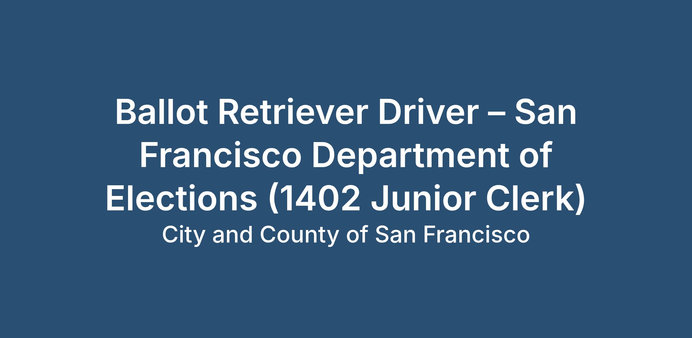 Ballot Retriever Driver – San Francisco Department of Elections (1402 Junior Clerk)