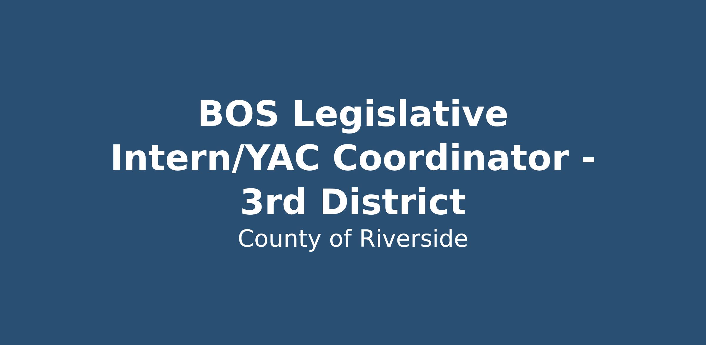 The County of Riverside's Board of Supervisor's is currently seeking a paid Legislative Intern/ Youth Advisory Council (YAC) Coordinator. The in-person student internship position is based in Riverside County and offers a flexible work week consisting of approximately 20 hours per week, with flexibility granted around academic obligations. The selected candidate can anticipate the internship to be two years in length.