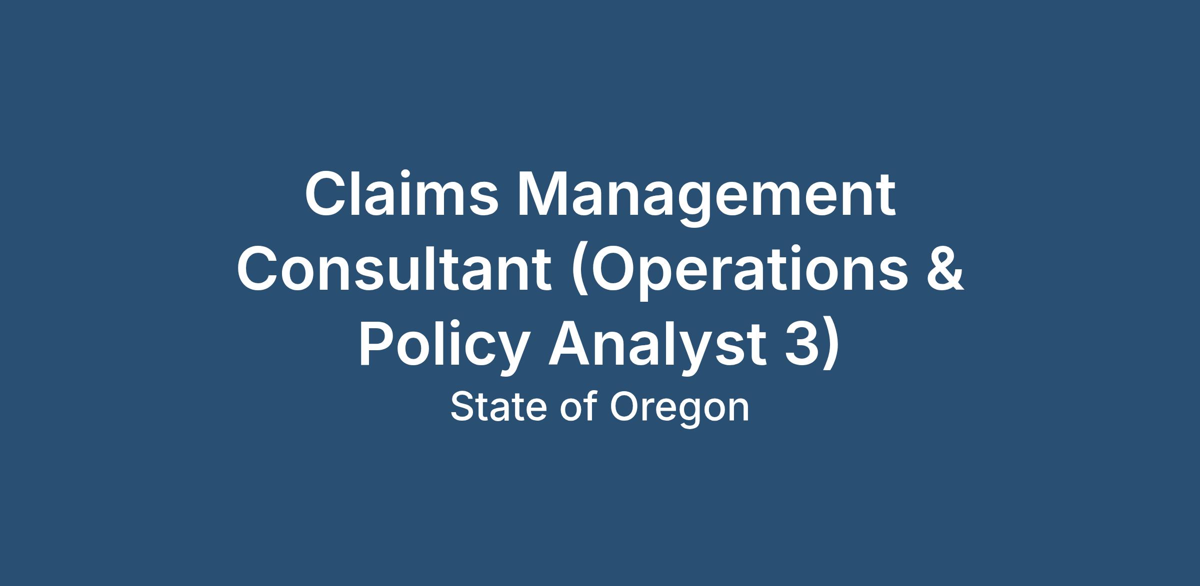 Claims Management Consultant (Operations & Policy Analyst 3)Job Description: