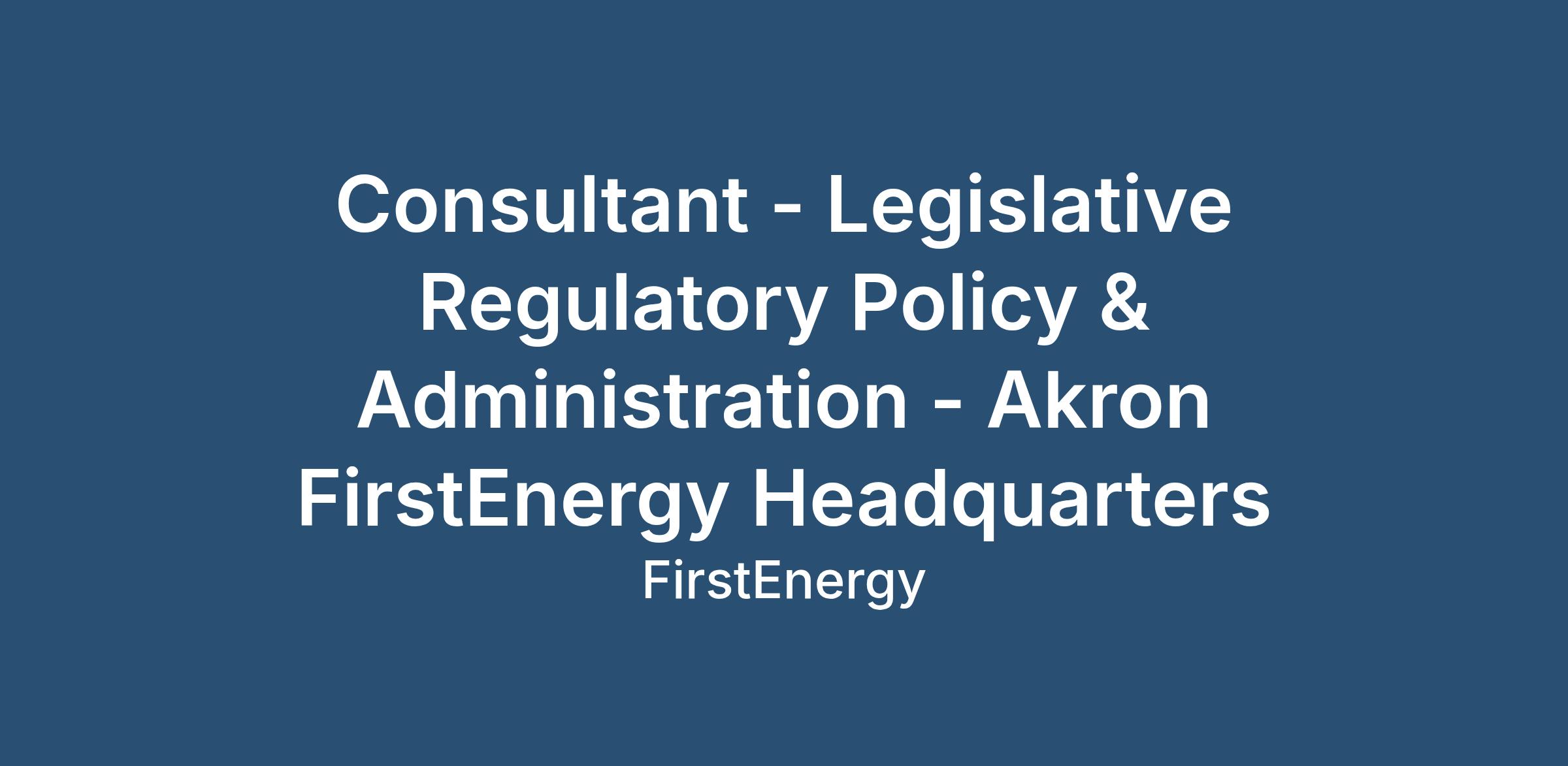 Consultant - Legislative Regulatory Policy & Administration - Akron FirstEnergy Headquarters