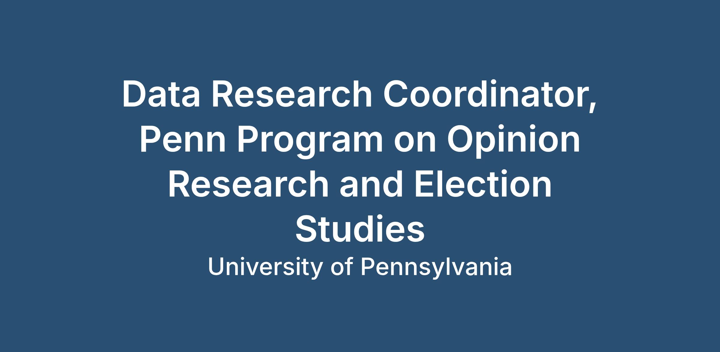 Data Research Coordinator, Penn Program on Opinion Research and Election StudiesJob Profile Title