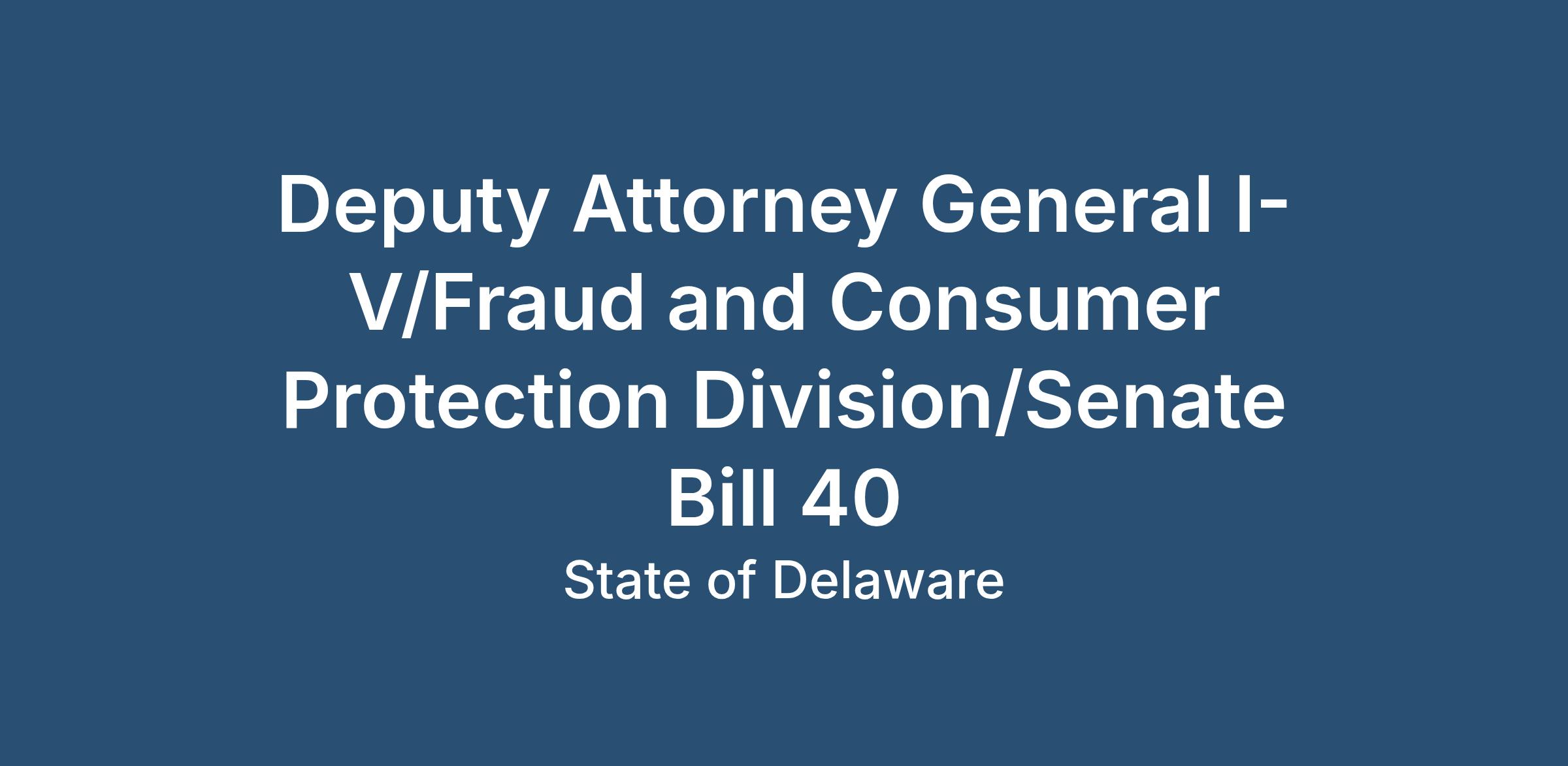 The Delaware Department of Justice is seeking an exceptional and highly motivated attorney to join the Consumer Protection Unit within the Fraud & Consumer Protection Division as a Deputy Attorney General (DAG). The selected candidate will be responsible for implementing and enforcing the duties established under Senate Bill 40. Work location is flexible and may be based in New Castle, Kent, or Sussex County.