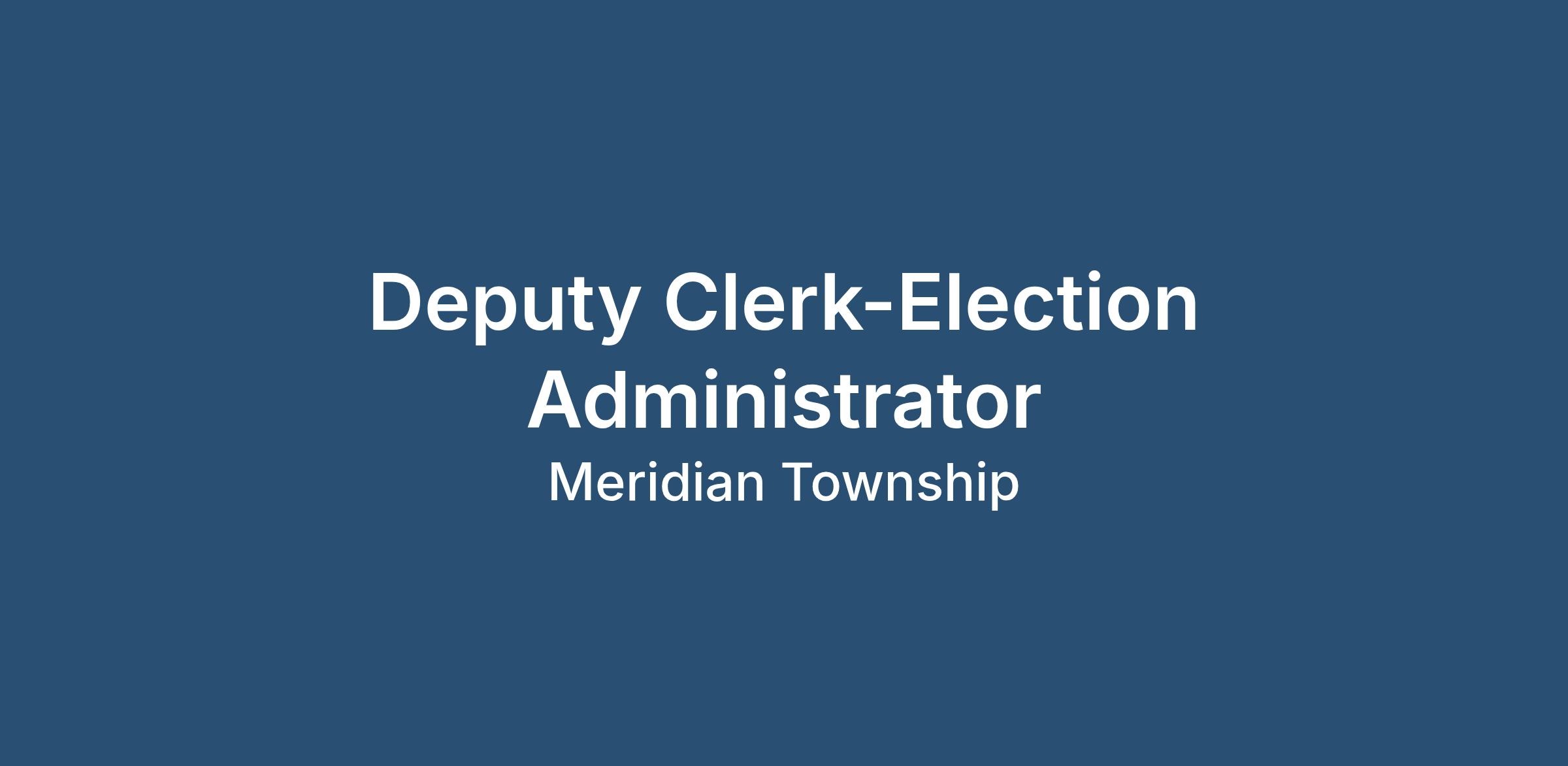 Meridian Charter Township is seeking a qualified and dedicated professional to serve as Deputy Clerk/Election Administrator. This position plays a vital role in supporting the Township Clerk in the administration of elections and the overall operations of the Clerk's Office. The ideal candidate will bring both logistical expertise in election processes and a commitment to public service.