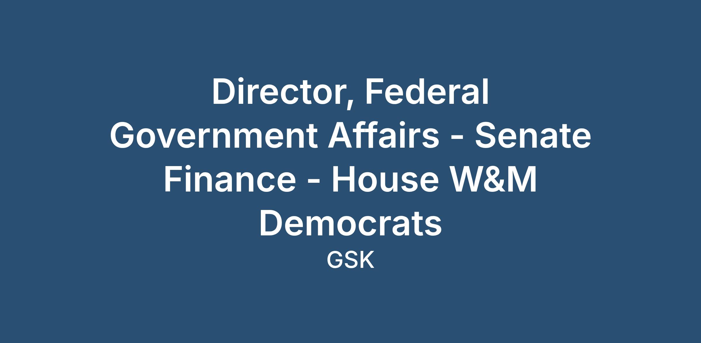 The Director, Federal Government Affairs at GSK is responsible for strategic engagement with U.S. federal policymakers and the Executive Branch to advance the company’s public policy priorities and regulatory interests. This role involves influencing legislative and regulatory outcomes, building relationships with key policymakers, developing coalitions with third-party external partners, and collaborating with cross-functional internal partners to support GSK’s mission of improving health through innovation. This pivotal role will involve direct engagement with Congress and the Executive Branch to champion GSK's priorities and advocate for critical issues within the healthcare and pharmaceutical industry.
