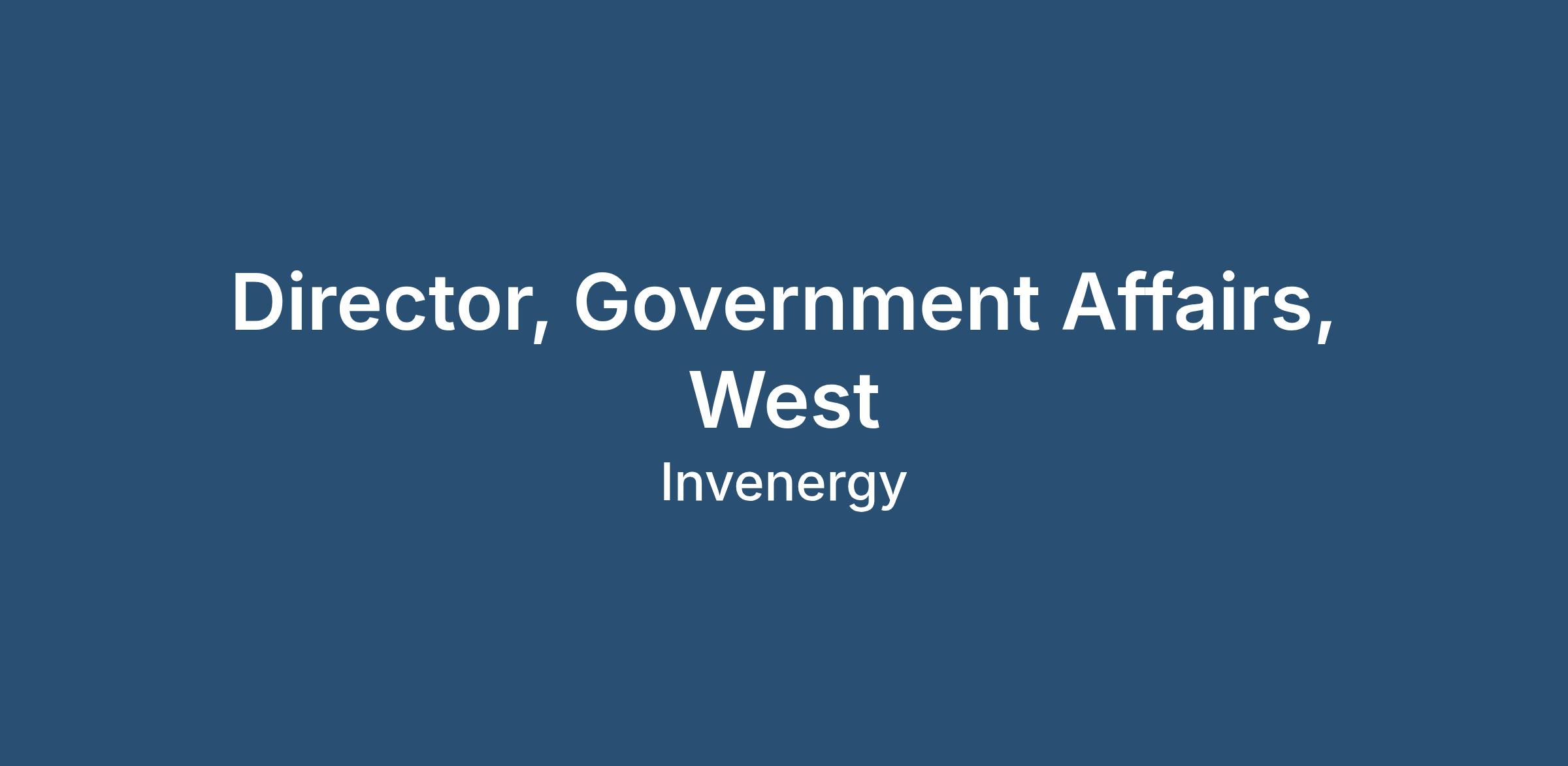As a Director, Government Affairs – West, you will focus on Invenergy's government affairs activities, primarily in the legislative and executive branch, across western states (WECC and CAISO), and manage one direct report.