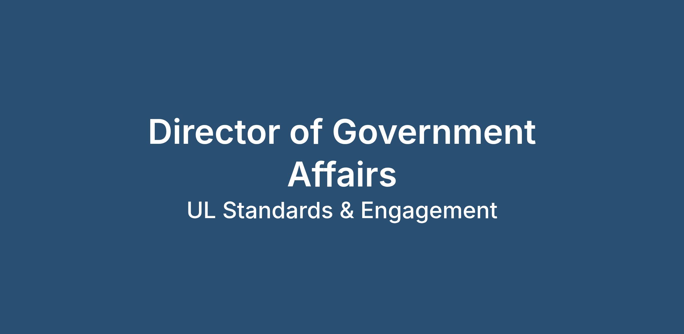 We have an exciting opportunity for a Director of Government Affairs at UL Standards & Engagement. This is a hybrid opportunity based in our Washington, DC office.