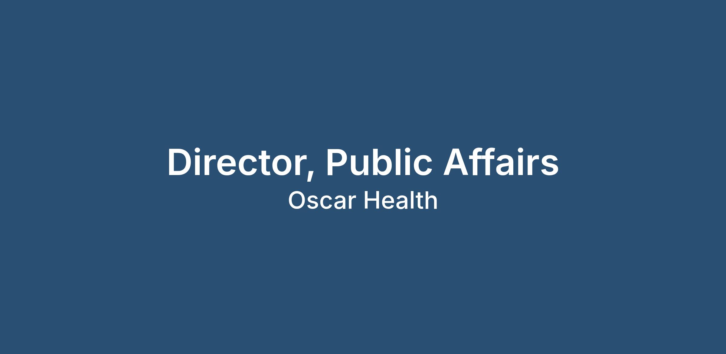Hi, we're Oscar. We're hiring a Director, Public Affairs to join our Government Affairs team.