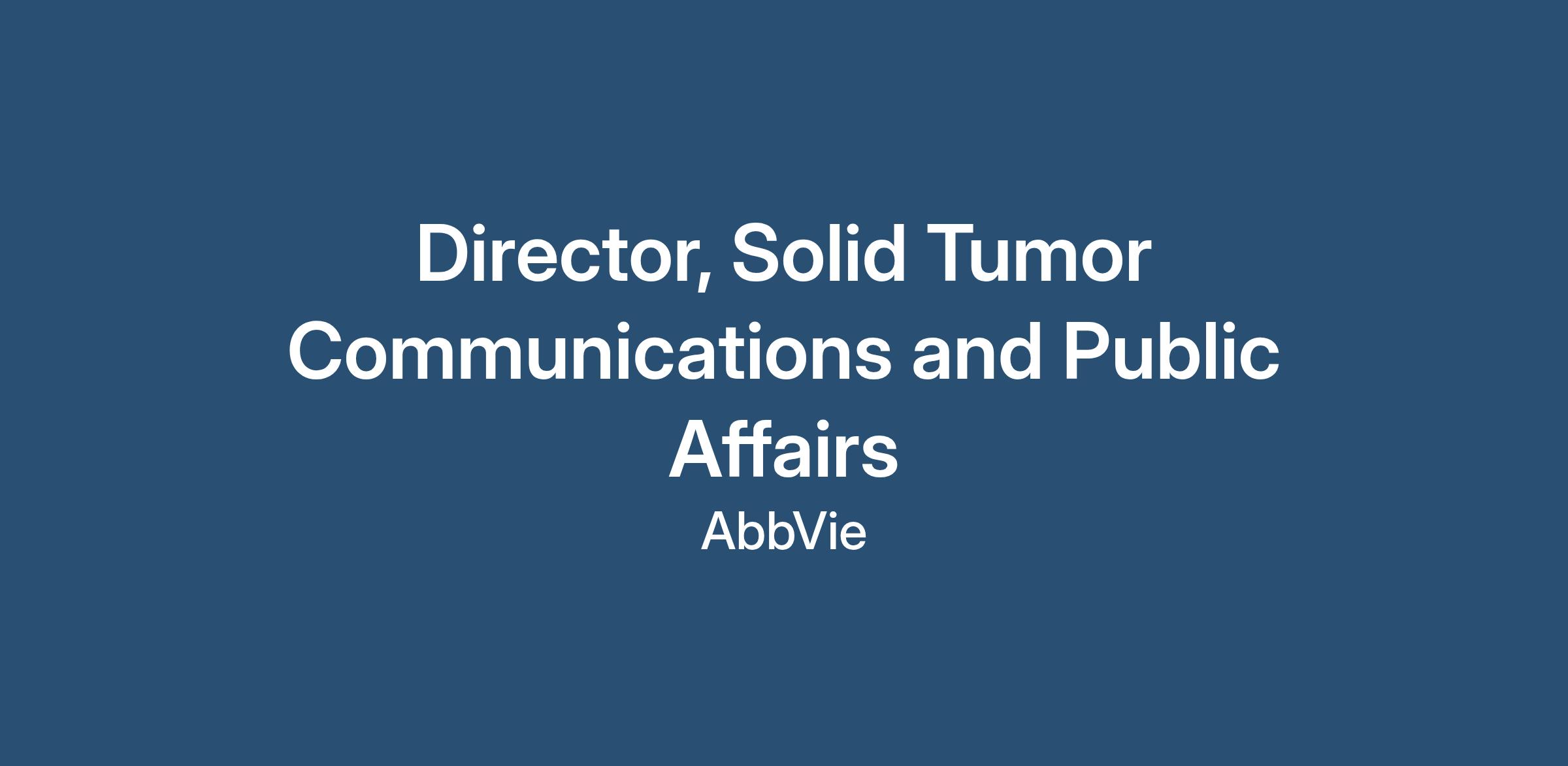 Oncology is an important AbbVie growth driver. This position is responsible for solid tumor corporate affairs strategies supportive of the Oncology Business Unit and as a member of the Global Therapeutics Communications and Public Affairs organization. The role drives multiple objectives, including promoting and protecting AbbVie’s commercial business by identifying and driving brand-supportive communications and campaigns, supporting treatment access, and importantly a deep understanding of the cancer patient journey that is reflected in program recommendations and counsel to the enterprise and business.