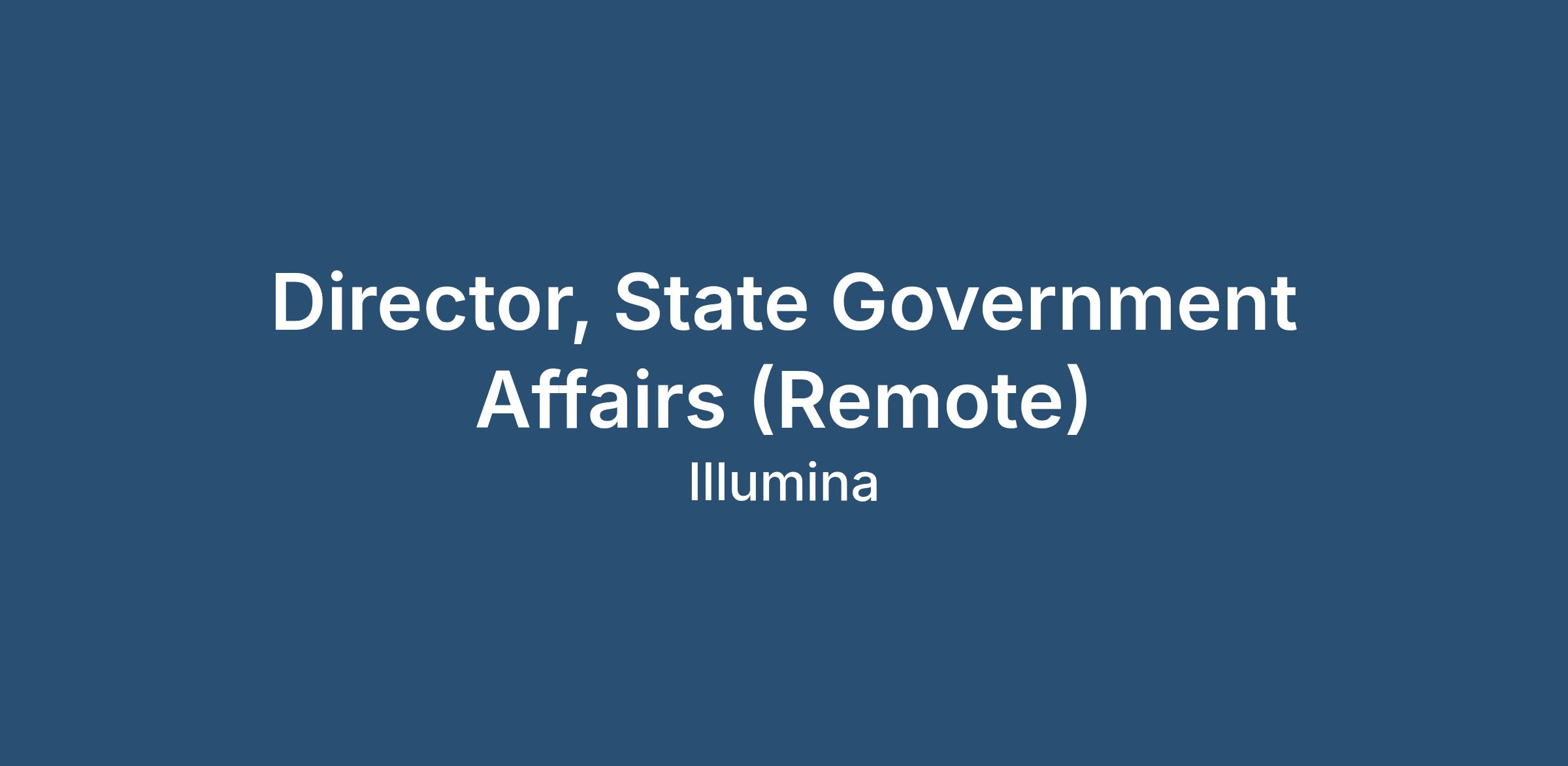 Responsible for identifying, monitoring and influencing state government legislation, regulation and public policy with the intent to optimize the business environment and patient access to Illumina solutions.