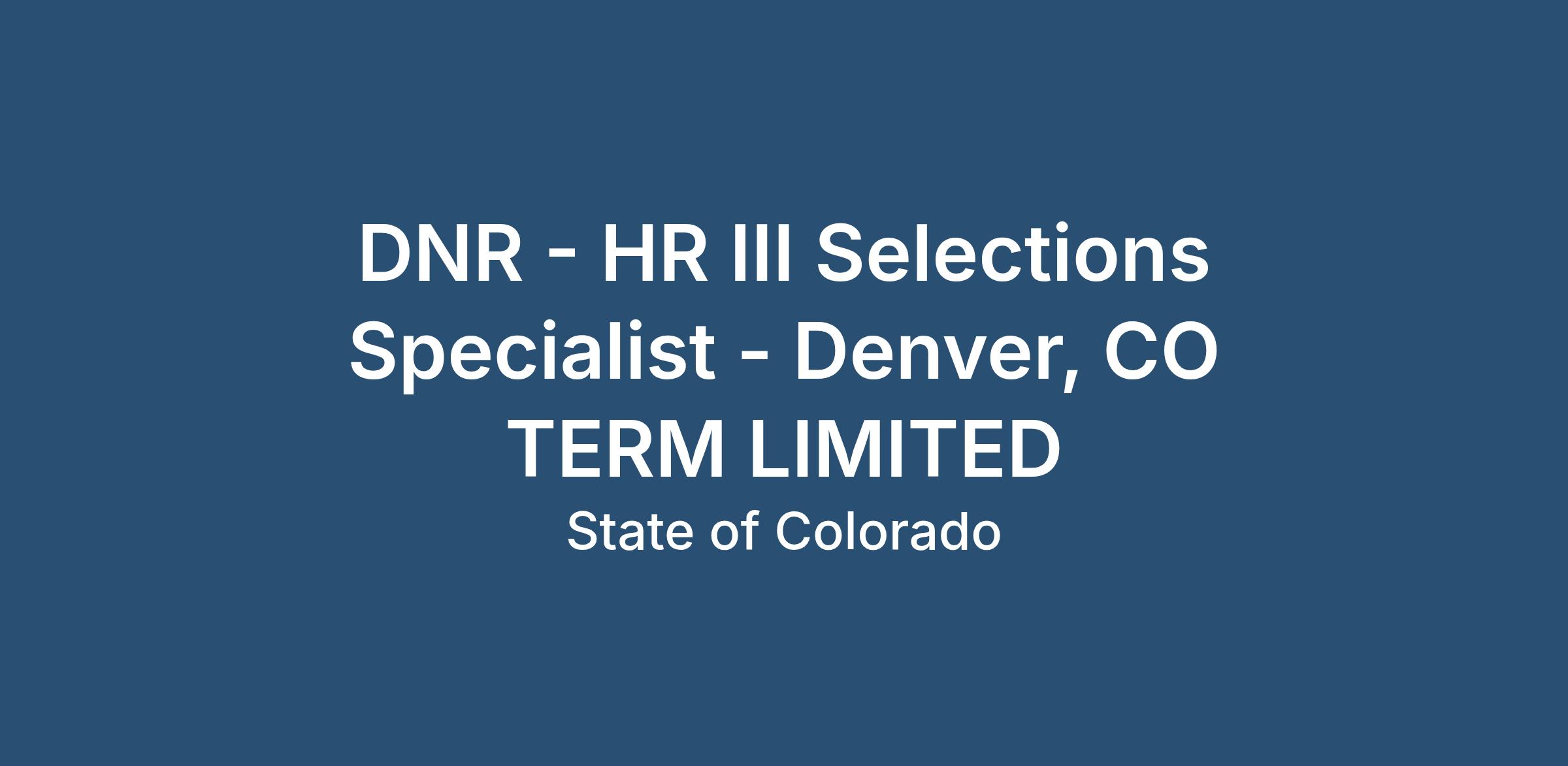 The Department of Natural Resources is committed to the full inclusion of all qualified individuals. As part of this commitment, our agency will assist individuals who have a disability with any reasonable accommodation requests related to employment, including completing the application process, interviewing, completing any pre-employment testing, participating in the employee selection process, and/or to perform essential job functions where the requested accommodation does not impose an undue hardship. If you have a disability and require reasonable accommodation to ensure you have a positive experience applying or interviewing for this position, please direct your inquiries to our ADAAA Coordinator, at dnr_hr_employeebenefits@state.co.us