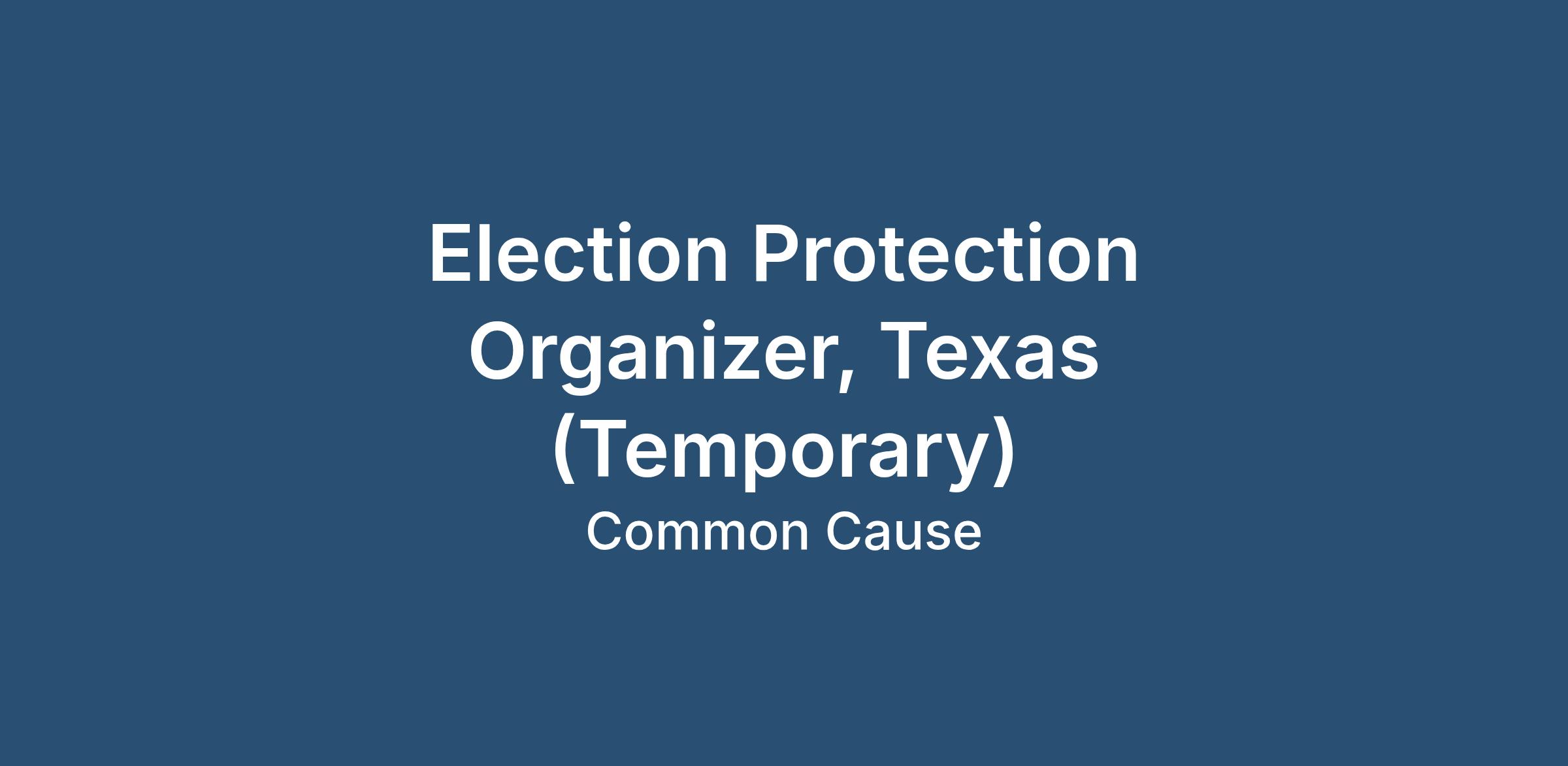We are looking for a collaborative and energetic Election Protection Organizer to join the Common Cause team in Texas. This is a key role supporting our work to grow and diversify our audience and volunteer base as we work to engage millions more in our fight to protect and strengthen democracy in advance of this significant upcoming election.