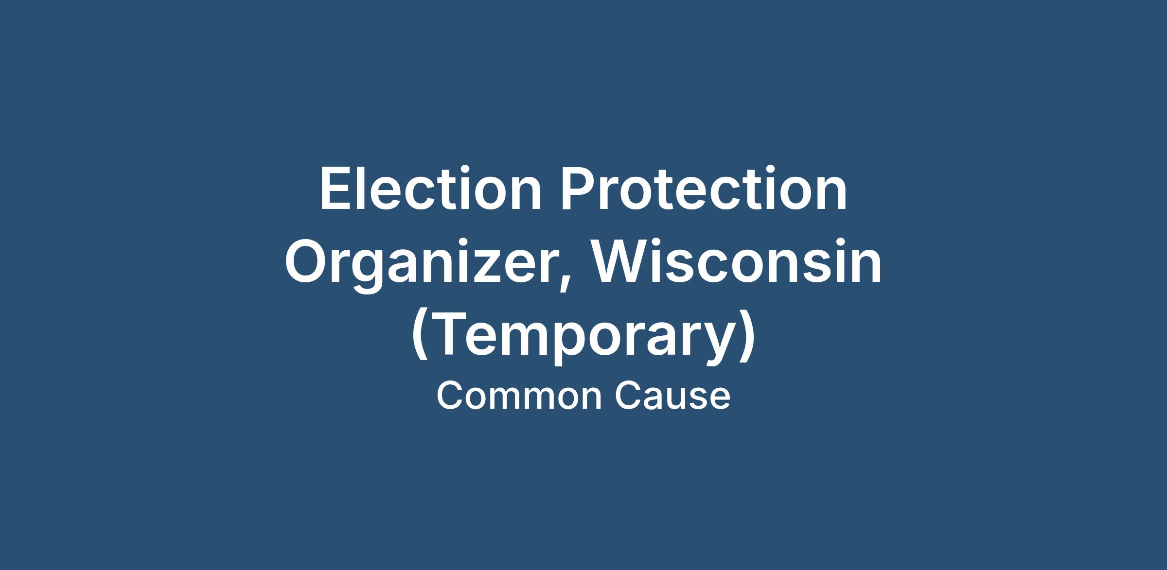 We are looking for a collaborative and energetic Election Protection Organizer to join our Common Cause team in Wisconsin. This is a key role supporting Election Protection work and our ability to build capacity and diversify our audience, volunteer and donor base as we work to engage millions more in our fight to protect and strengthen democracy in advance of upcoming Wisconsin elections in August and November 2026.