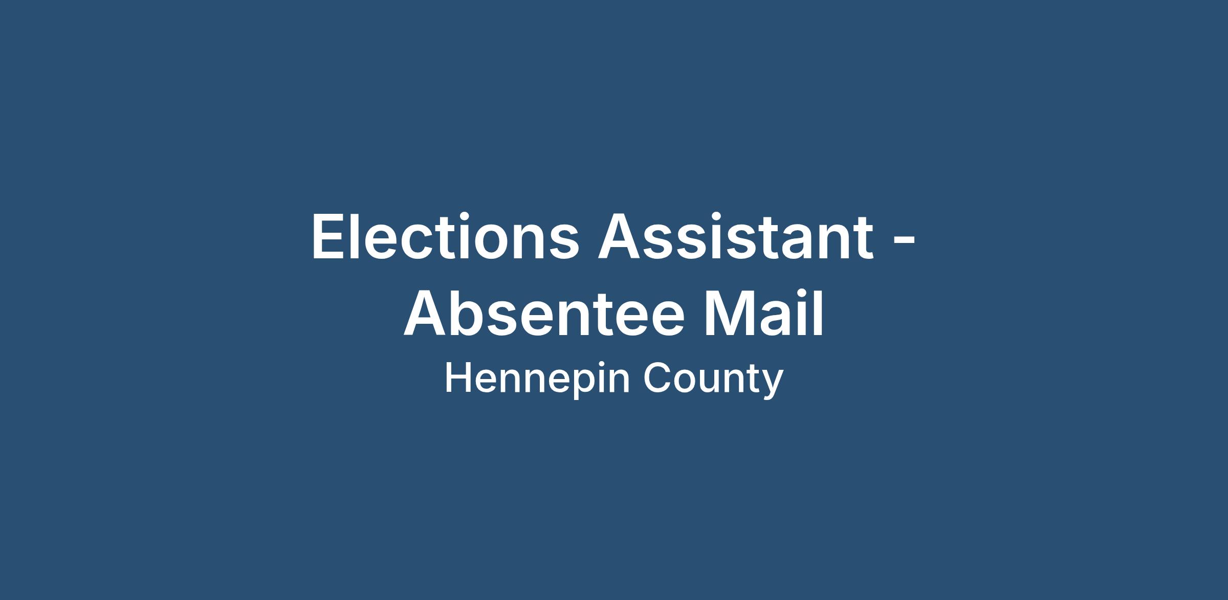 Hennepin County’s Elections department is seeking to fill several temporary Elections Assistant positions to support the absentee mail team through the 2026 General Election. These positions will primarily consist of data entry, mail out absentee voting support, processing absentee ballots, and other clerical duties as assigned. Elections Assistants must perform duties in a non-partisan manner and be able to use technical and analytical skills to perform a variety of clerical functions. The Elections department is looking for individuals interested in election administration, government processes, and interaction with residents.