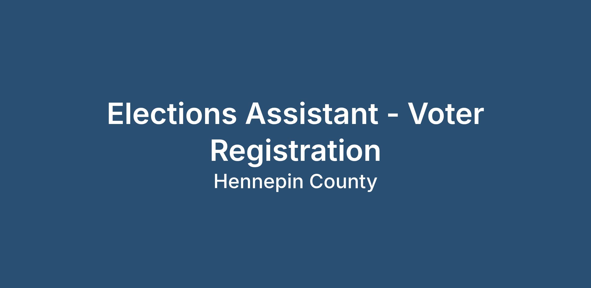 The Elections department is looking for individuals who are interested in election administration and government processes. The Hennepin County Elections department is responsible for the administration and supervision of all federal, state, and local elections in the county and 800,000 registered voters.