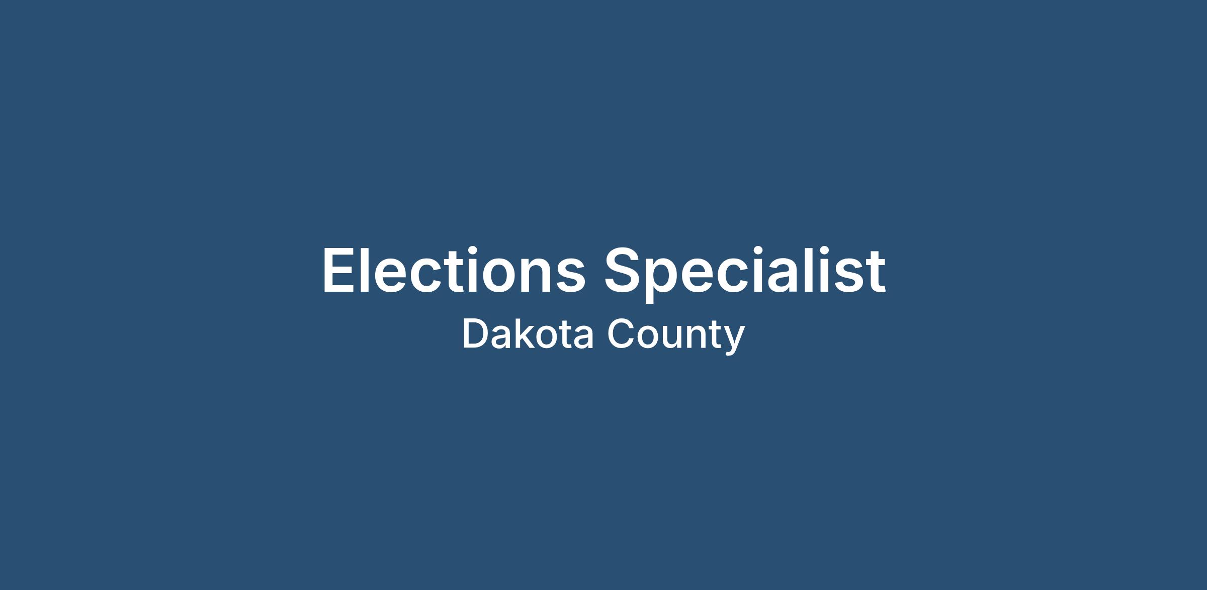 The Elections Specialist is responsible for election and voter registration system databases. Leads in the preparation, ordering and distribution of election materials. Administer absentee, early voting, and by-mail voting processes. Develops, creates, and conducts training presentations and resources for seasonal election staff, municipal clerks, and election judges. Administer the Absentee Ballot Board for Dakota County. Works with cities, townships, and school districts to prepare for elections and ensure compliance with state law. Oversee election return processing, results reporting, and polling place logistics.