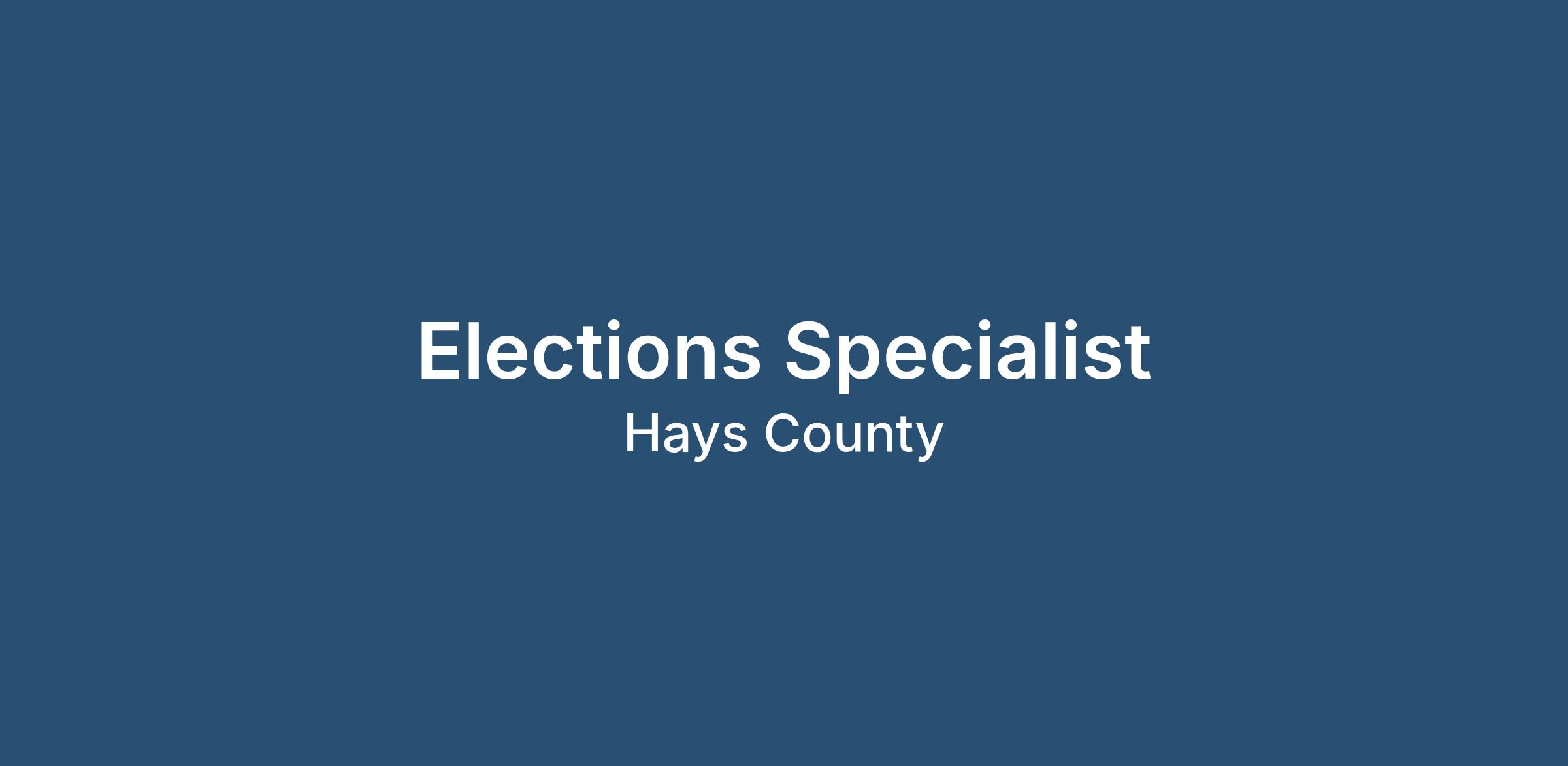 The Elections Specialist reports directly to the Elections Administrator and is responsible for overseeing voter registration and ballot-by-mails operations and staff for the Hays County Elections Department. Ensures all voter registrations processes are compliant with Texas Election Code. The work involves treating a variety of problems, questions, or situations in conformance with established criteria. The work product affects the design, or operation of the County’s elections and voter registration. This position affects the economic wellbeing of Hays County