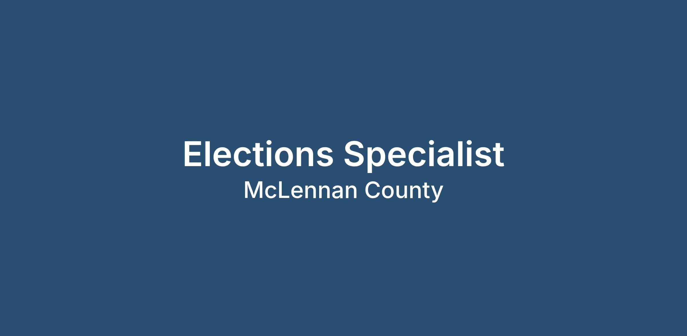 Under supervision of the Elections Administrator, the Elections Specialist performs duties related to all activities in the election and voter registration process in compliance with the Texas Election Code and Federal regulations. The duties include assisting in the training and guidance of election workers and poll election workers, assisting in responding to inquiries from other departments and the public regarding elections and voter registration records and procedures. The Elections Specialist is knowledgeable in all aspects of the Elections Administration office including the following: Voting Supplies/Equipment, Voter Registration, and Ballot by Mail.