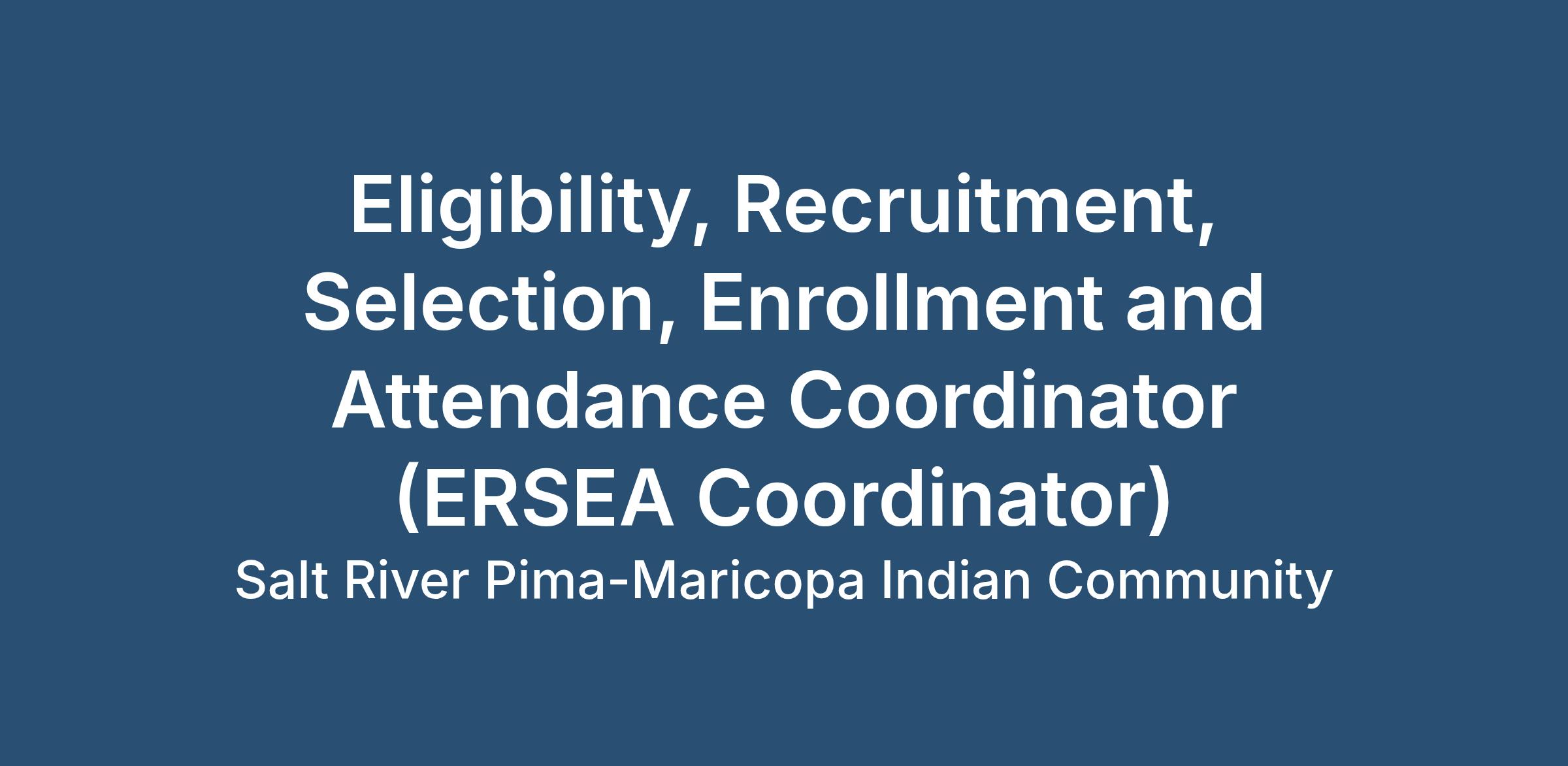 Under the general supervision of the ECEC Education Leader, the Eligibility, Recruitment, Selection, Enrollment and Attendance Coordinator (ERSEA Coordinator) ensures compliance with all funding and reporting requirements of the Head Start Program Performance Standards (HSPPS) 1302 Subpart A- Eligibility, Recruitments, Selection, Enrollment and Attendance (ERSEA) and 1303 Subpart F Transportation.The coordinator will analyze, plan and implement policies and procedures, track recruitment and enrollment, provide training related to transportation, recruitment and enrollment systems, and monitor compliance.