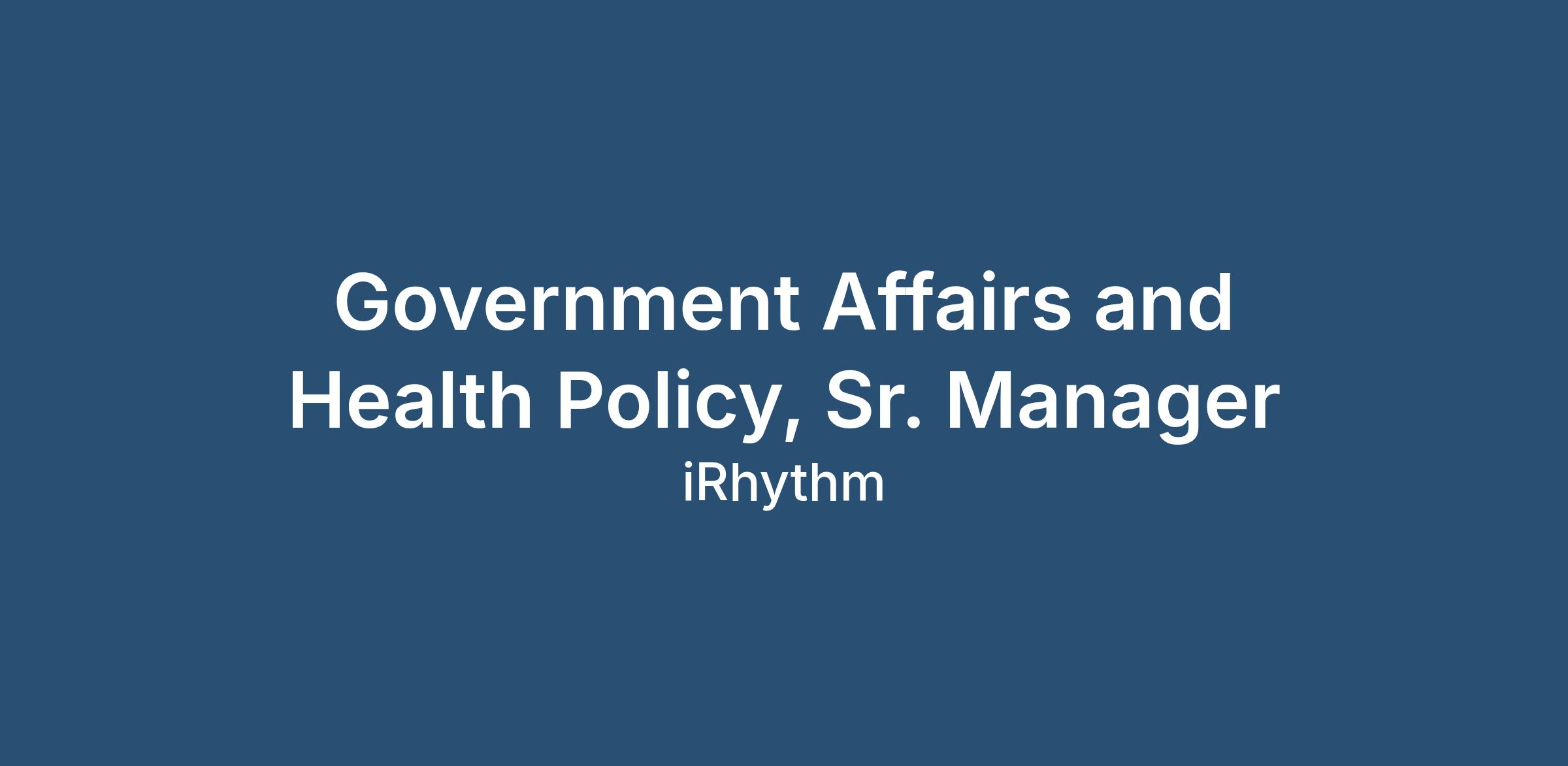 The Government Affairs and Health Policy Senior Manager will be based in the Washington, D.C. area and serve as a highly strategic individual contributor dedicated to advancing the company’s federal policy and reimbursement priorities. This position is responsible for strategic engagement with U.S. federal policymakers and the Executive Branch, with the goal of furthering the company’s public policy priorities and regulatory interests.