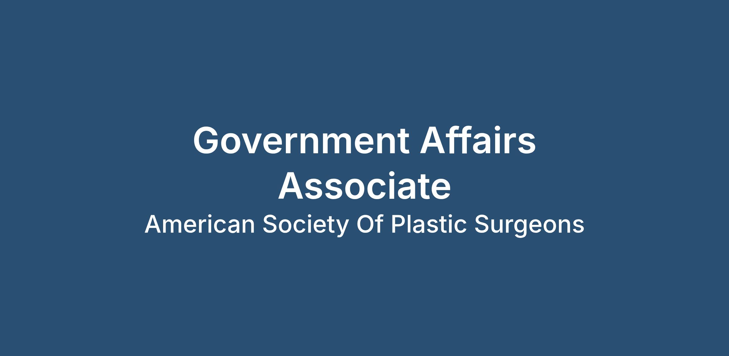 The American Society of Plastic Surgeons (ASPS) is seeking a Government Affairs Associate to support and advance its federal and state advocacy efforts. In this role, you’ll monitor and analyze policy proposals, engage in key decision-making forums such as the American Medical Association’s House of Delegates (HoD), and help influence policy development across governmental and payer environments.