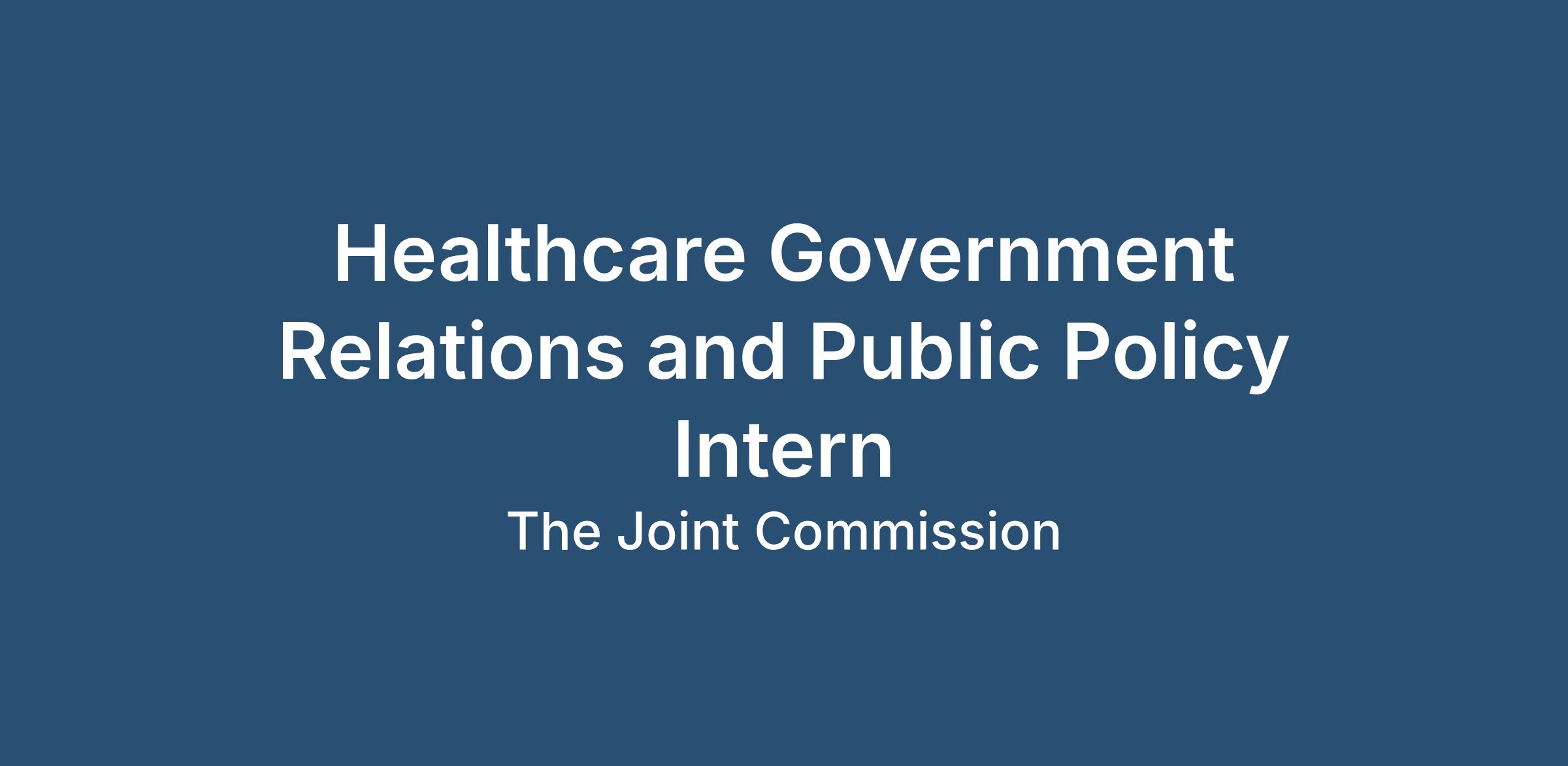 The Healthcare Government Relations and Public Policy intern works primarily with Joint Commission’s Government Relations office in Washington, DC. The intern will assist government relations staff with specific projects related to federal healthcare policies, healthcare legislation, and Joint Commission priorities (with some exposure to state-focused work). Interns will work out of Joint Commission’s Washington D.C. office and attend in-person events in the area.