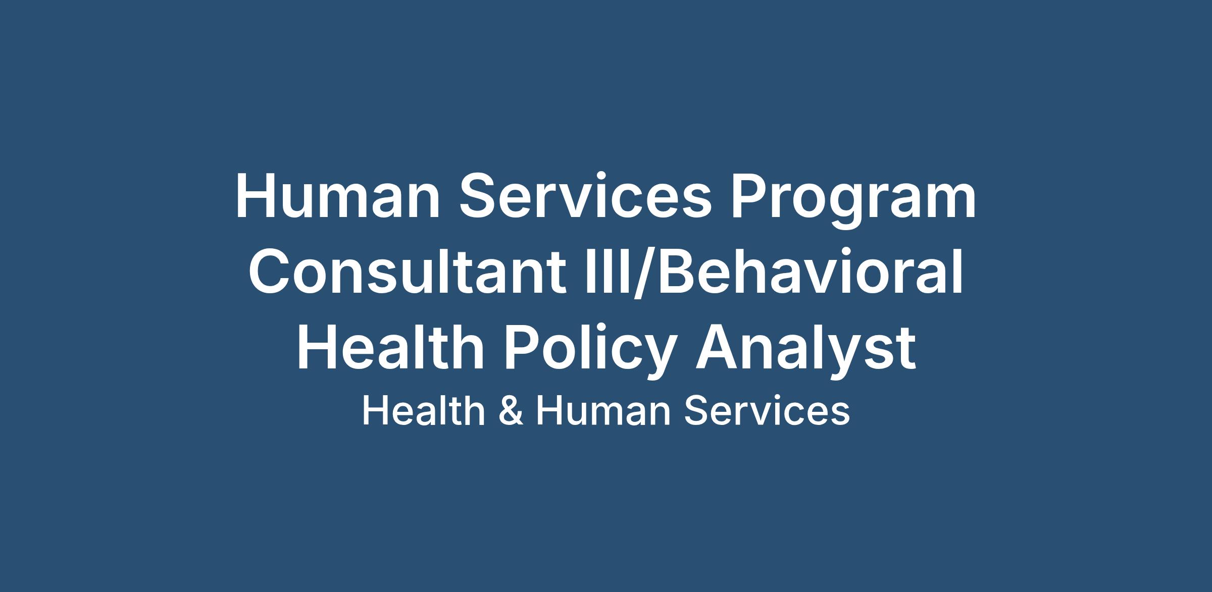 Human Services Program Consultant III (NS)Position Number