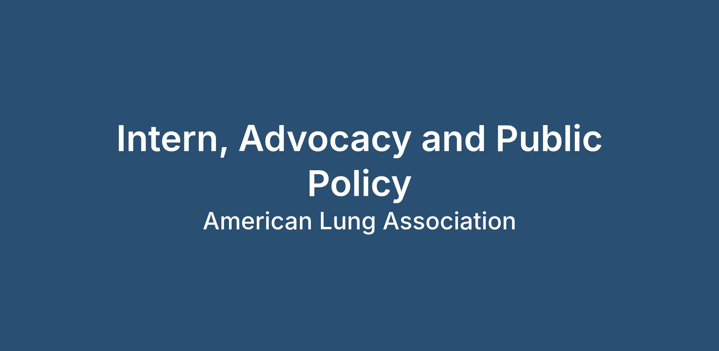 The American Lung Association has an excellent opportunity for an Intern, Advocacy and Public Policy in Chicago, IL. Alongside members of the Advocacy & Public Policy team, you will join an outstanding group of professionals dedicated to our mission: to save lives by improving lung health and preventing lung disease through research, education, and advocacy.