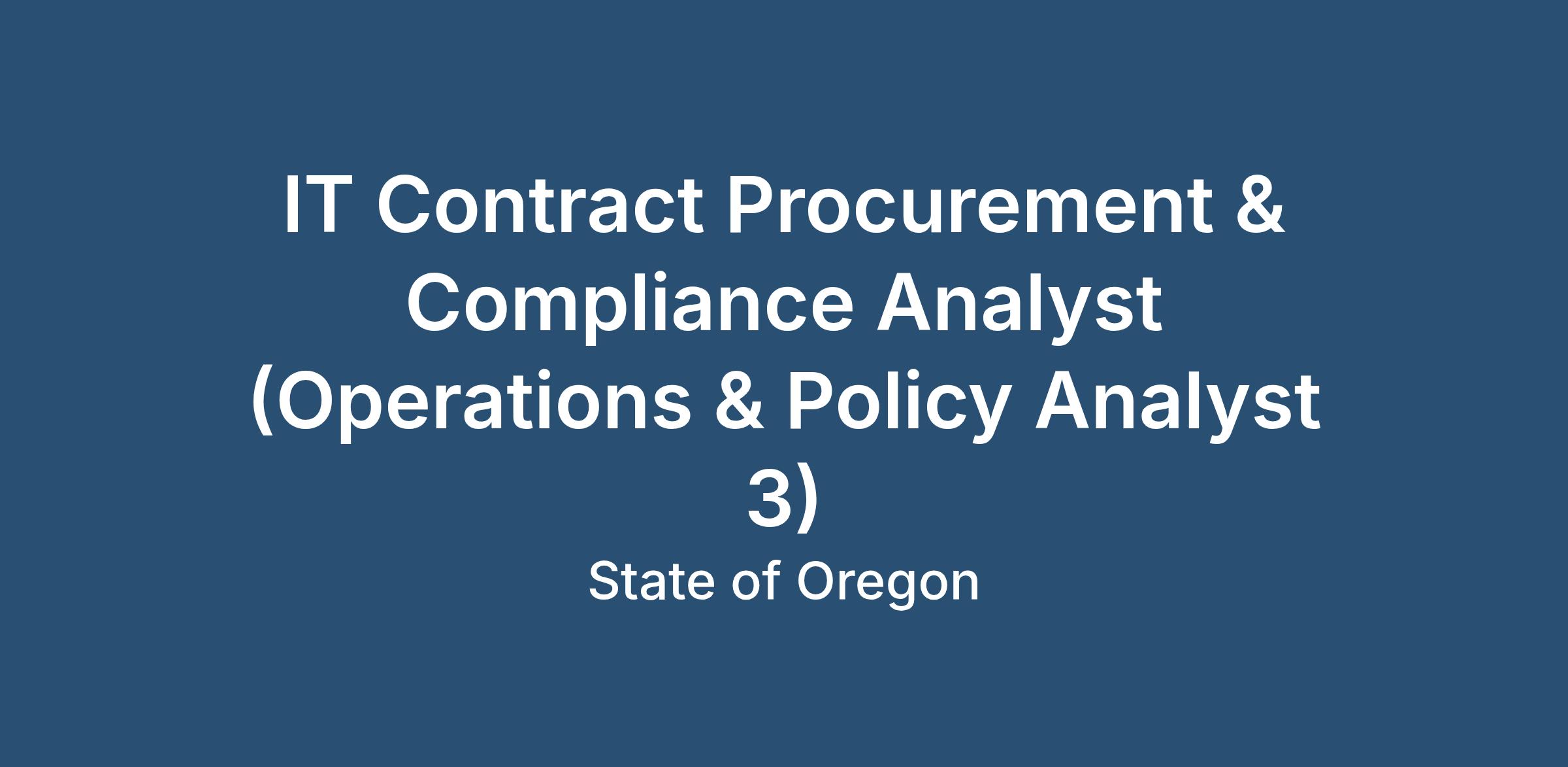 IT Contract Procurement & Compliance Analyst (Operations & Policy Analyst 3)Job Description: