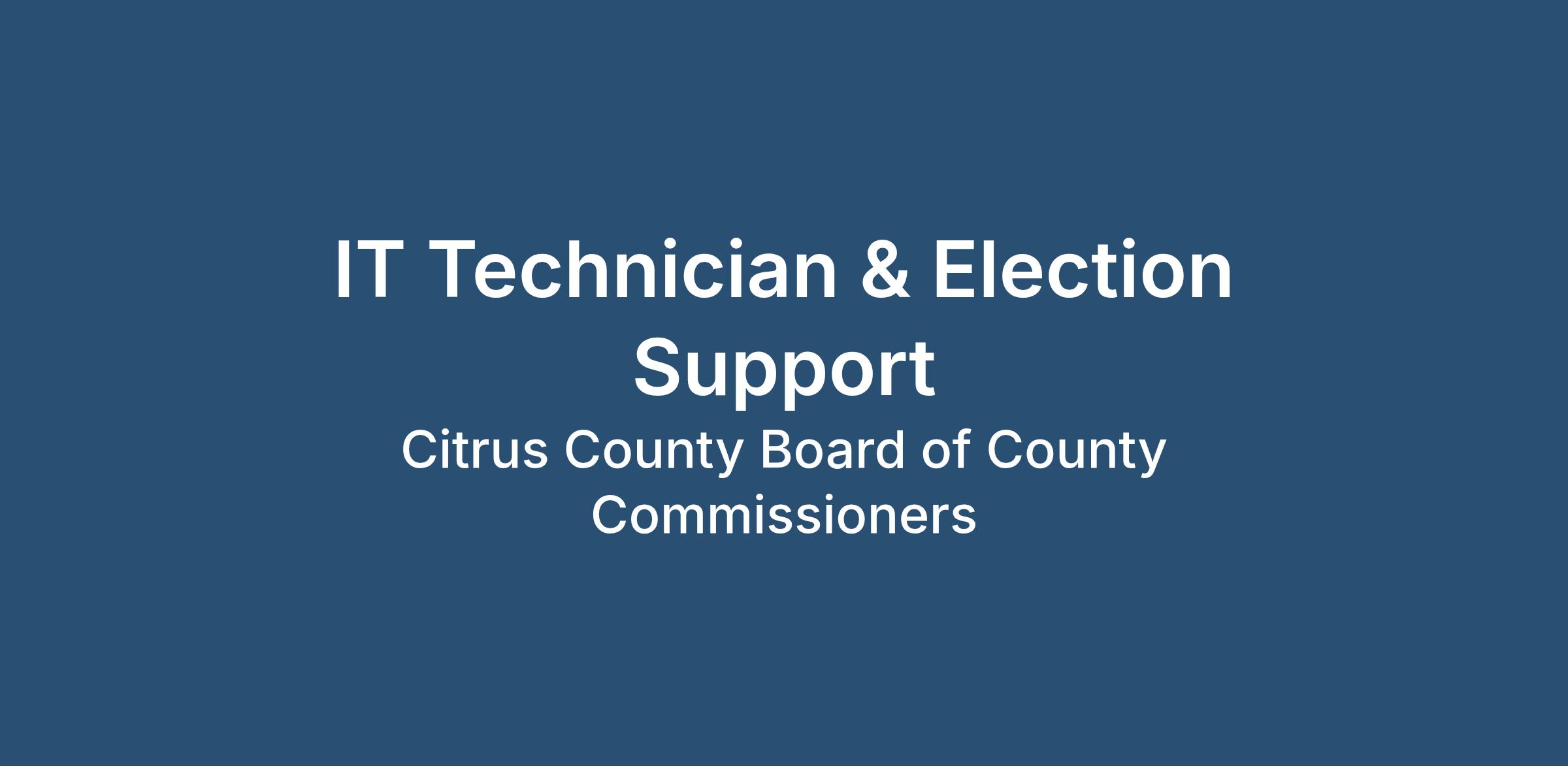 This is a career opportunity with the Supervisor of Elections Office in Information Technology. The applicant must have the potential to grow into a more advanced technical role over time. Responsibilities include maintaining office technology, supporting IT infrastructure, assisting with asset management and budgeting, and providing secondary support for election operations. Includes writing standard operating procedures and the ability to read and understand Florida Statutes. Assist with the setting up of the early voting sites and warehouse projects. Must be detail oriented and self-motivated with the ability to multitask and work independently as well as in a team. This is a fast-paced position in a constantly changing environment. Must be available to report to the office outside of normal business hours in the event of an emergency or otherwise urgent matter.