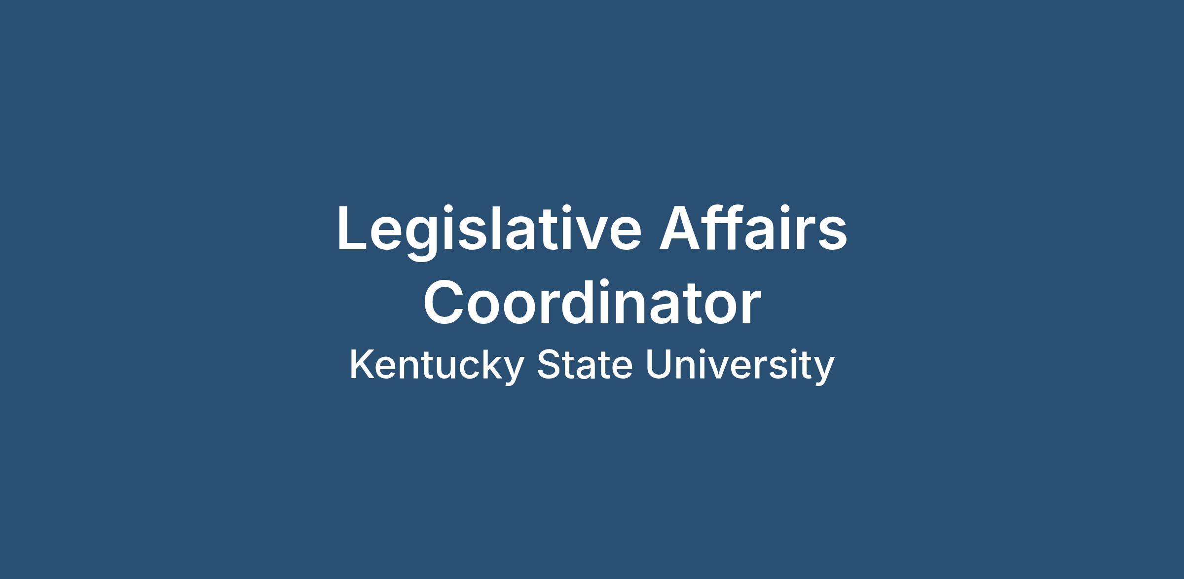 The Legislative Affairs Coordinator communicates Kentucky State University’s (KSU) funding needs and legislative priorities to federal, state, and local governments, and leads the University’s federal relations efforts. Reporting directly to the President and working in consultation with university administrators and executives, the Legislative Affairs Coordinator develops and executes a comprehensive, proactive government affairs strategy that supports KSU’s mission and strategic goals.