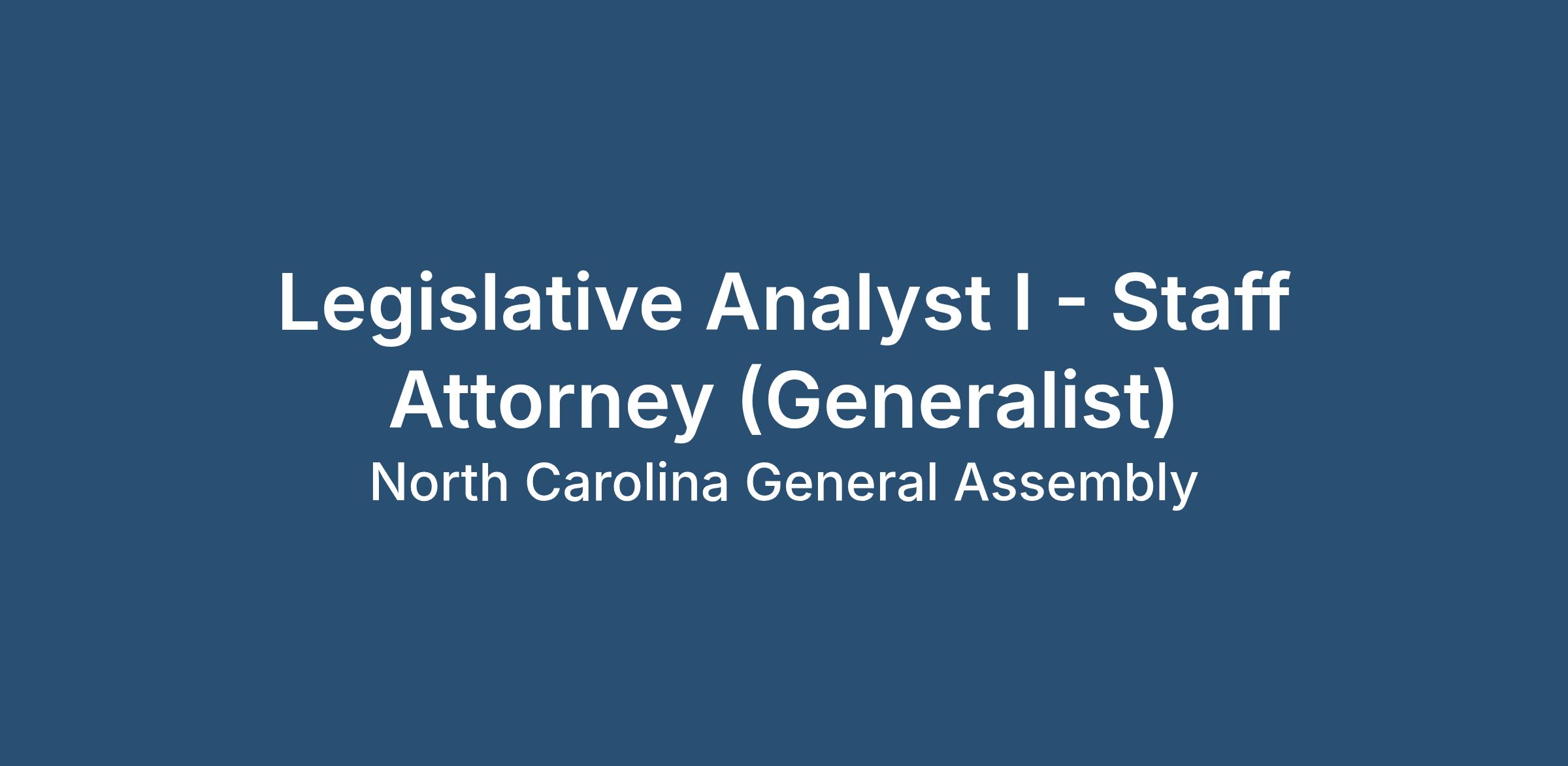 To be considered for the Legislative Analyst I – Staff Attorney position, all applicants must submit an NC General Assembly application and required documents of the application packet by 5:00 P.M. on Friday, April 3, 2026.