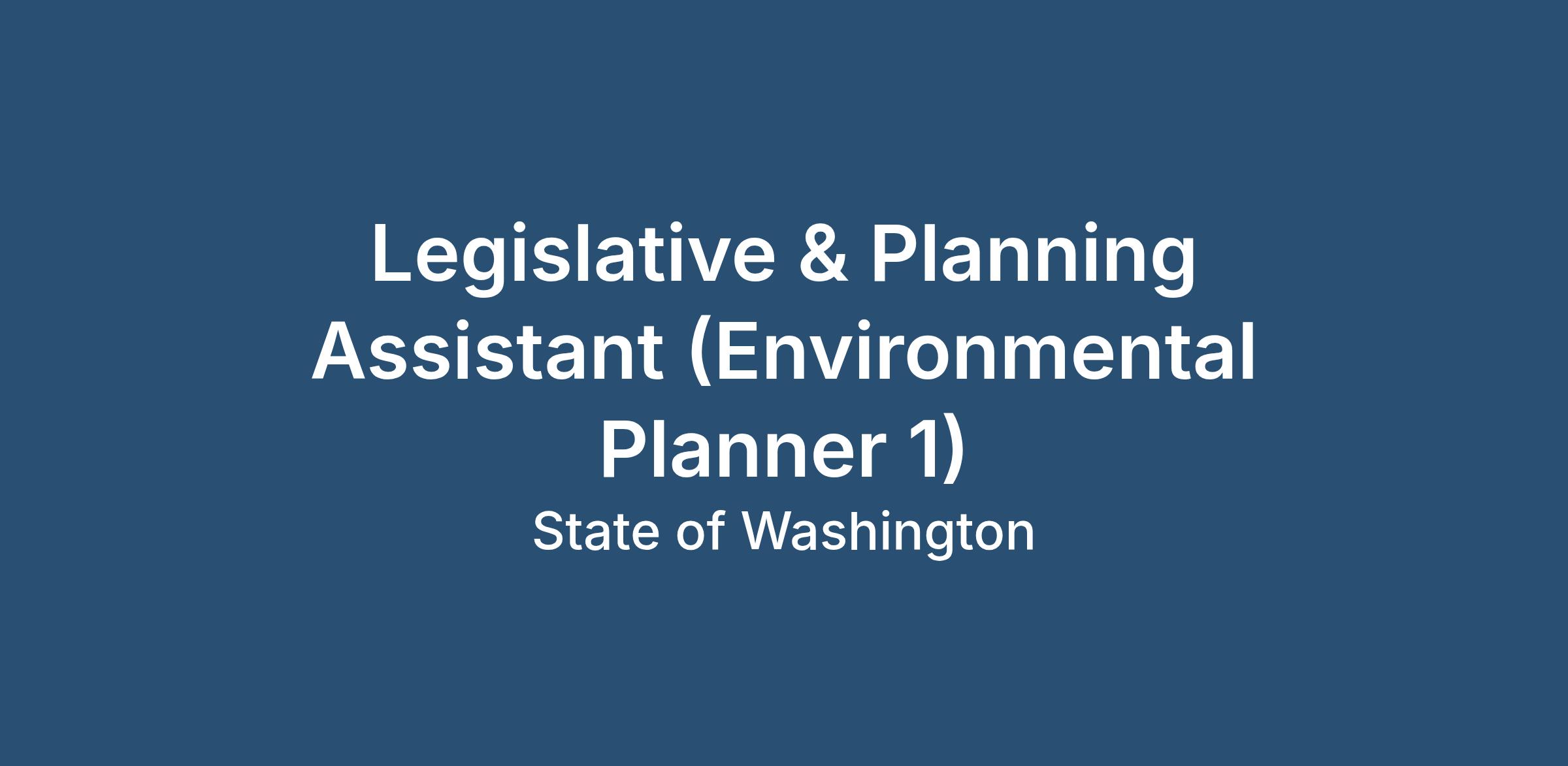The Department of Ecology is hiring a Legislative & Planning Assistant (Environmental Planner 1) within the Solid Waste Management (SWM) program.