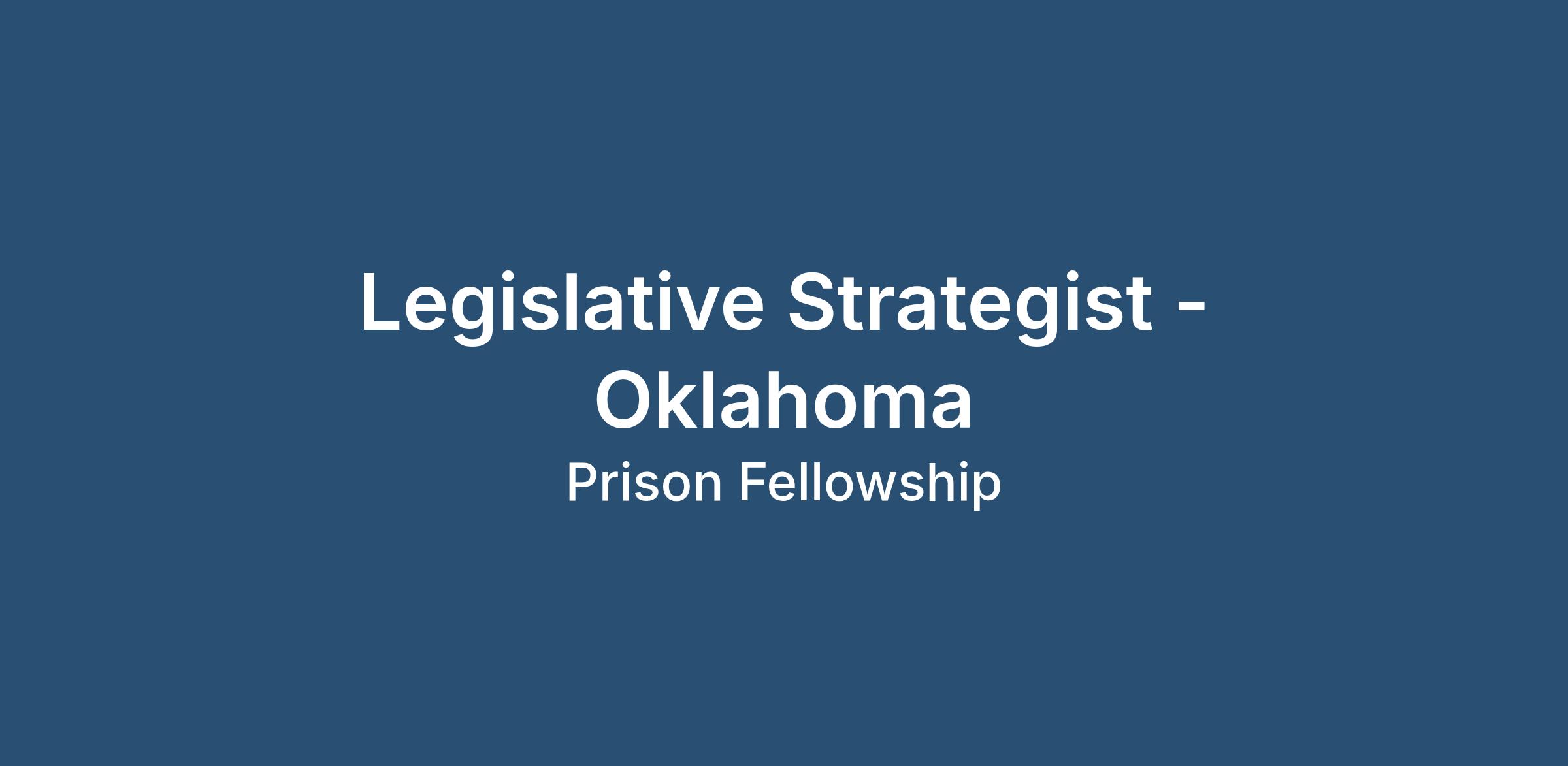 A driven and mission focused Legislative Strategist to execute state level policy campaigns as directed by the Manager, State Government Affairs. You will build Prison Fellowship's influence among state policymakers and coalition partners while helping to recruit and engage grassroots and grasstops in assigned target states. Applicant must live in Oklahoma and be willing to drive to the Oklahoma City, OK area regularly.