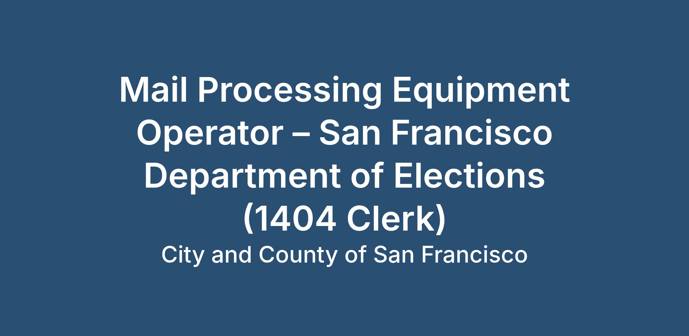 In preparation for the June 2, 2026, Statewide Direct Primary Election, the Department is seeking applications for a seasonal position of Mail Processing Equipment Operator (1404 Clerk).