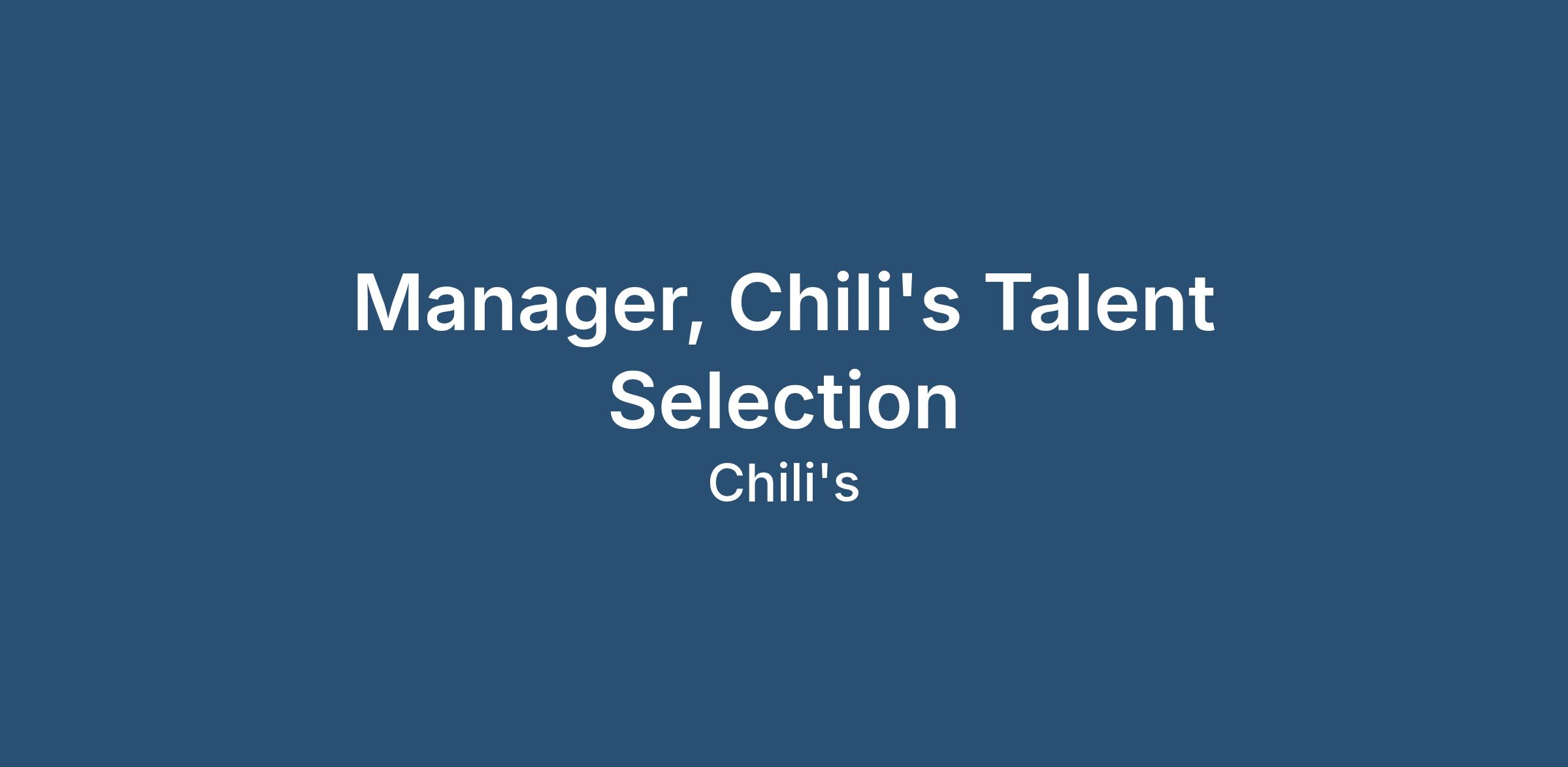 Talent Selection Manager - Chili's Central Plains Region