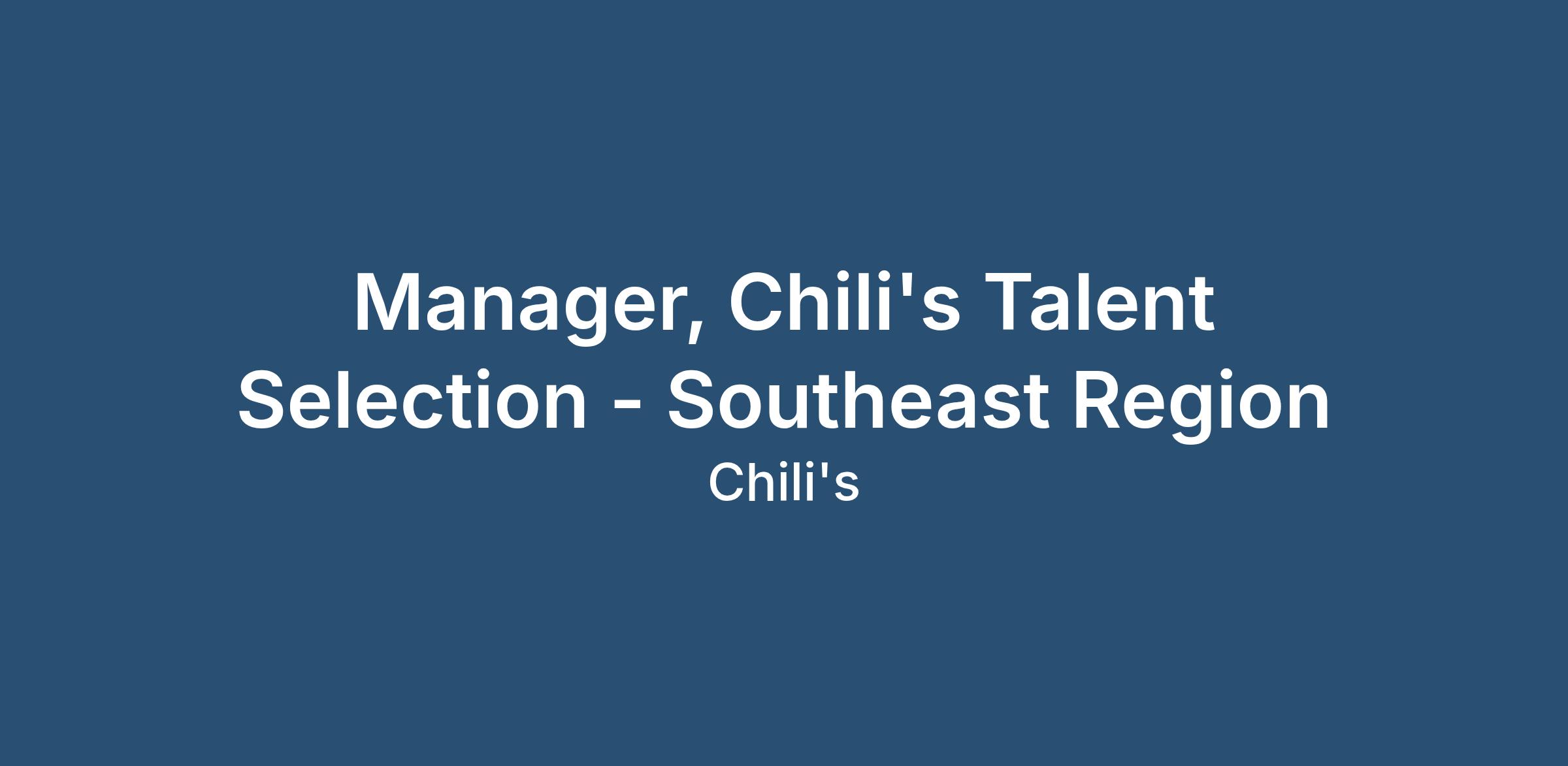 DescriptionManager, Chili’s Talent Selection- Southeast Region