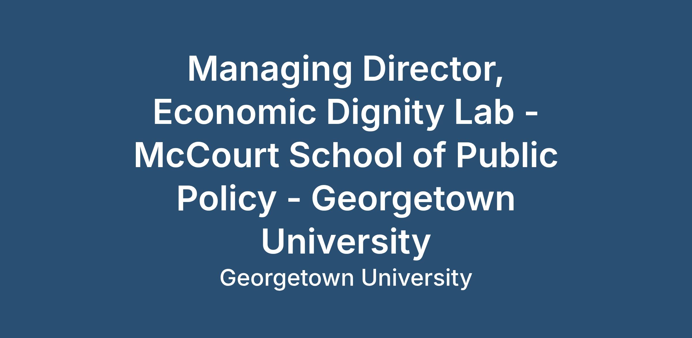 Managing Director, McCourt School of Public Policy, Economic Dignity Lab, Georgetown University - The Economic Dignity Lab at Georgetown University seeks a dynamic Managing Director to execute the mission and serve as day-to-day engine of the Lab.