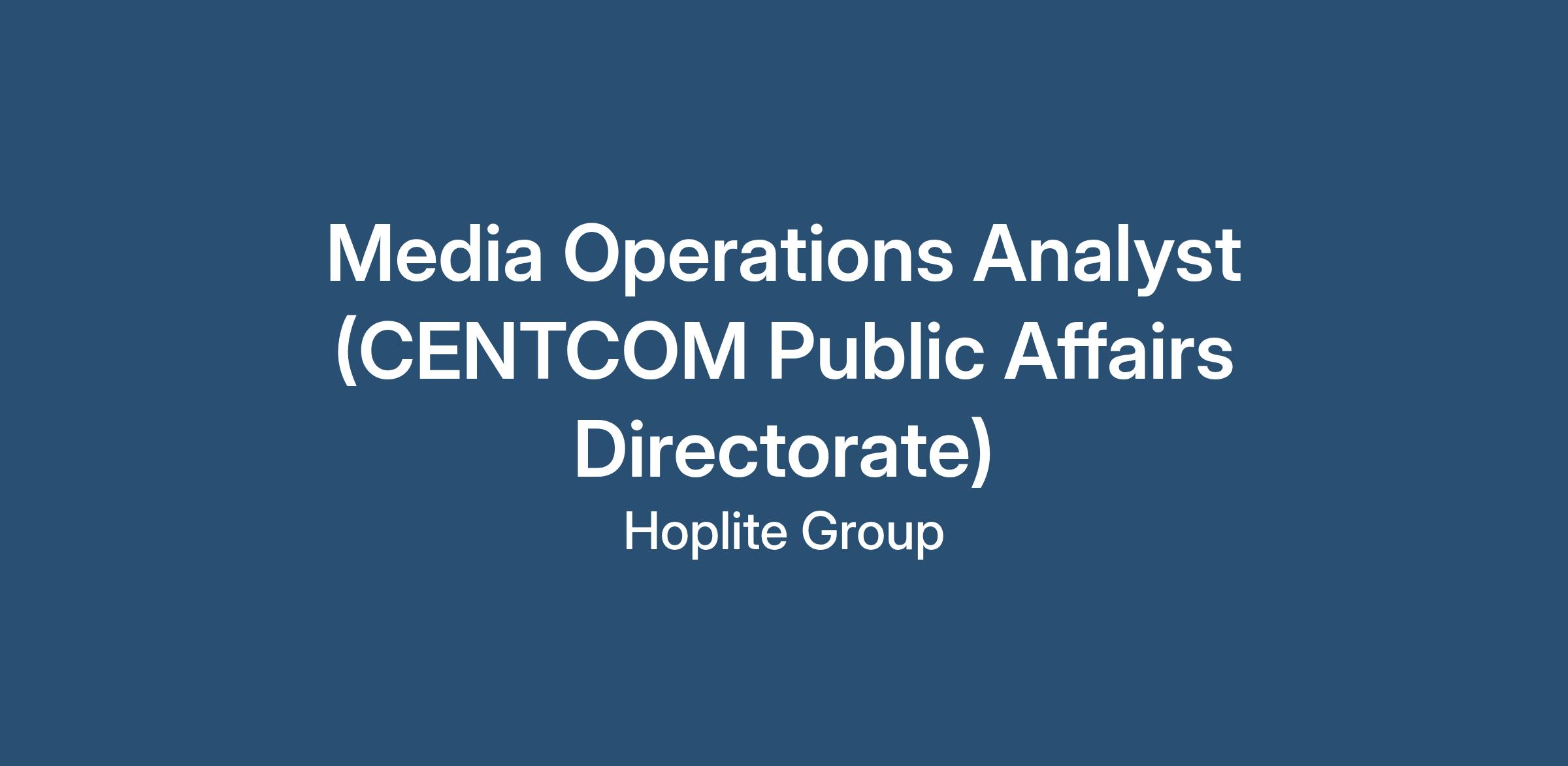 Bottom Line Up Front: Hoplite Group is seeking Media Operations Analysts to support contracted services for the U.S. Central Command (CENTCOM) Public Affairs Directorate (CCPA). This contract will include executing communication strategies and ensuring accurate, timely information to U.S. and regional audiences. It will employ digital tools to monitor, collect, translate, and analyze traditional and social media across CENTCOM’s 21-nation area of responsibility, supporting senior leader decision-making, correcting misinformation, and aiding counter-propaganda efforts. Services will include strategic communication planning, media engagement, crisis response, training, and quality assurance. The Media Operations Analyst Team consists of eight (8)analysts who provide 24/7 strategic media operations support to the CENTCOM Public Affairs Directorate (CCPA). These analystsare divided into two primary roles: Five (5) analysts serve as watch standers in the CENTCOM Joint Operations Center (JOC), ensuring round-the-clock coverage. Three (3) analysts staff the Media Operations Desk, focusing on media engagement, query responses, and public affairs coordination. This rotational structure ensures all analysts develop a well-rounded skill set, combining real-time operational monitoring with proactive media engagement. Personnel assigned to the JOC will ensure 365-day, 24/7 coverage, including weekends and federal holidays, to support CCPA’s mission-critical communication efforts.