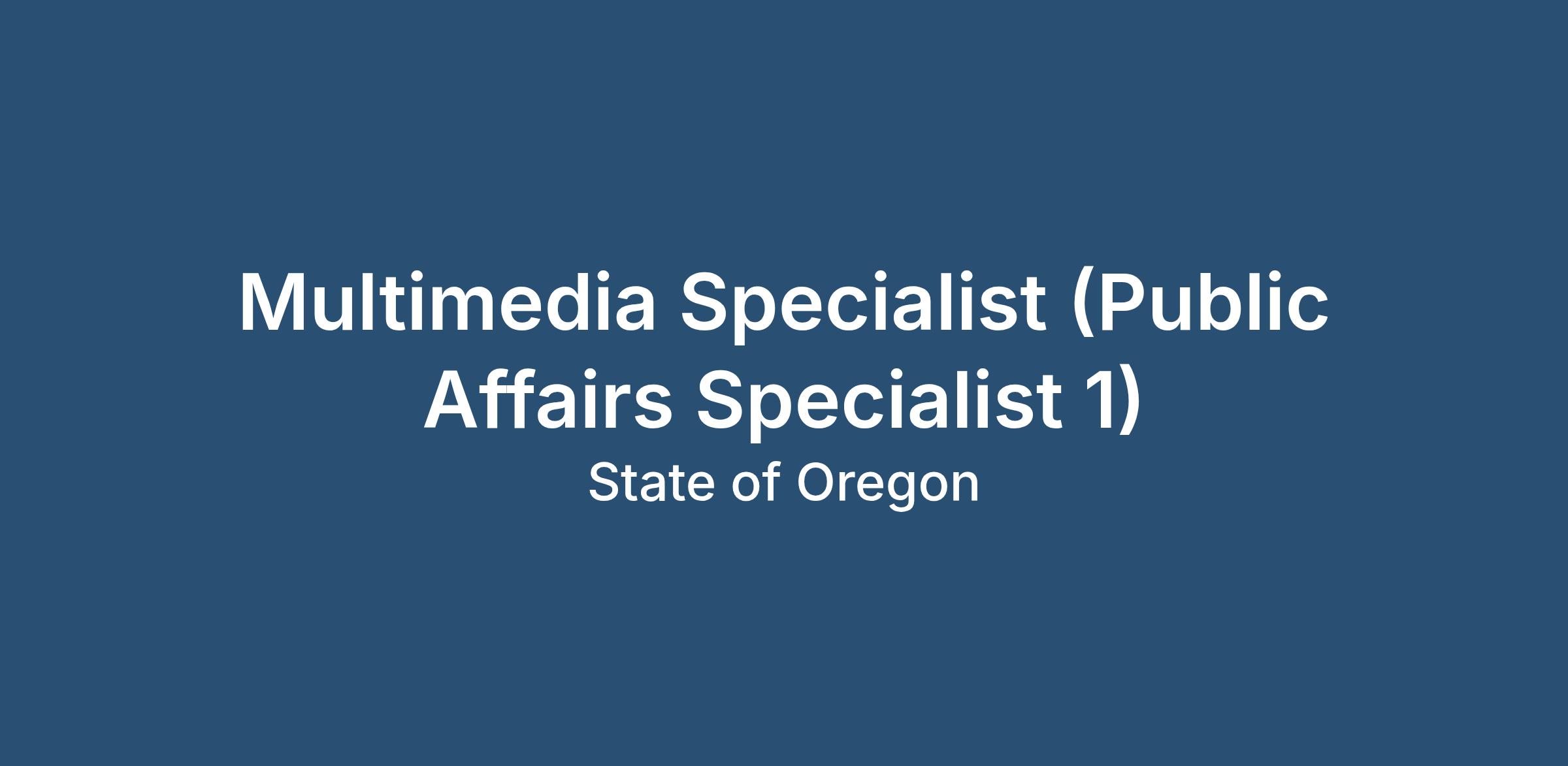 The Oregon Department of Veterans’ Affairs has a full-time opportunity available for a Multimedia Specialist (Public Affairs Specialist 1) located at ODVA Headquarters in Salem, Oregon.