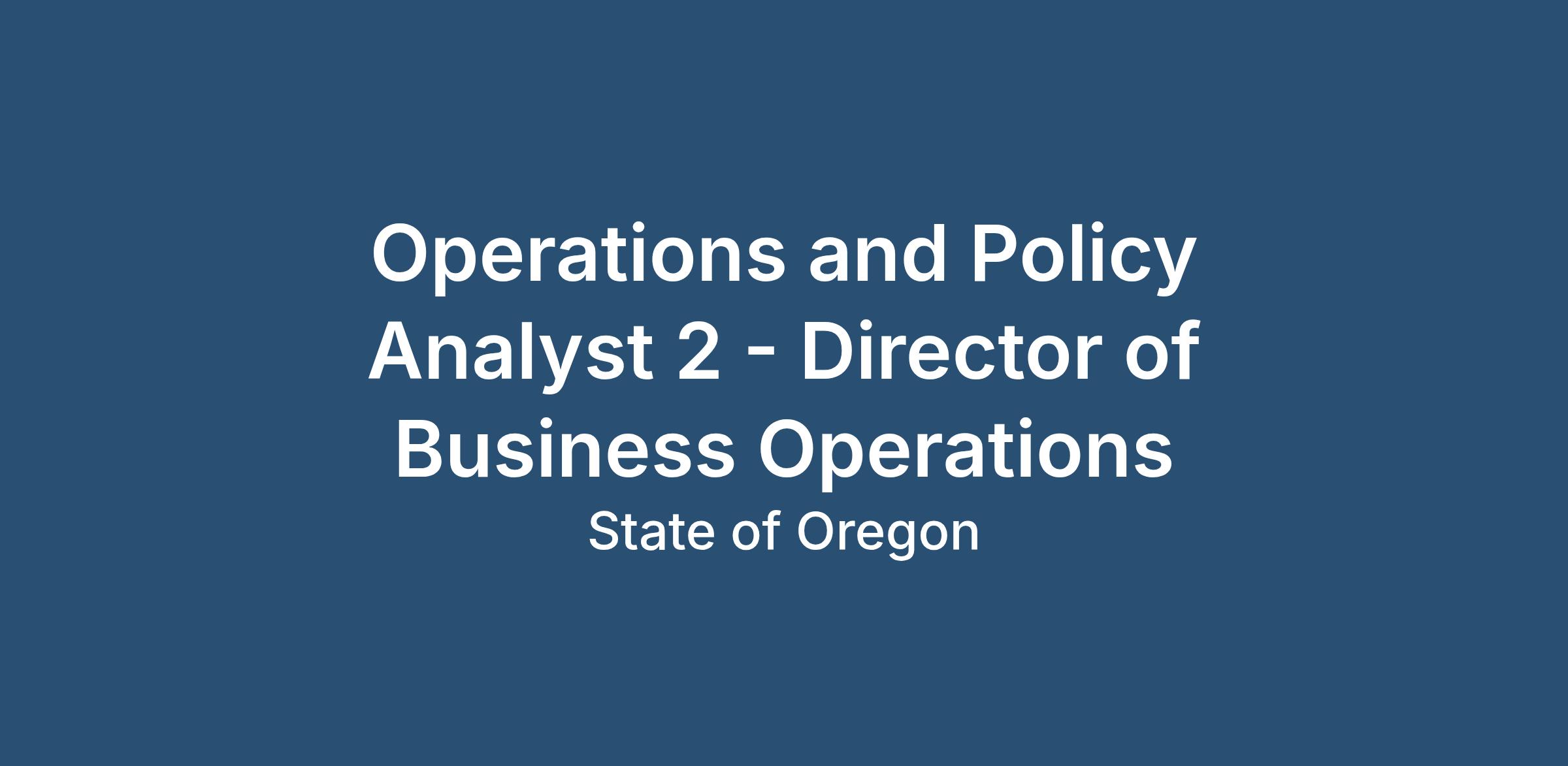 Operations and Policy Analyst 2 - Director of Business Operations