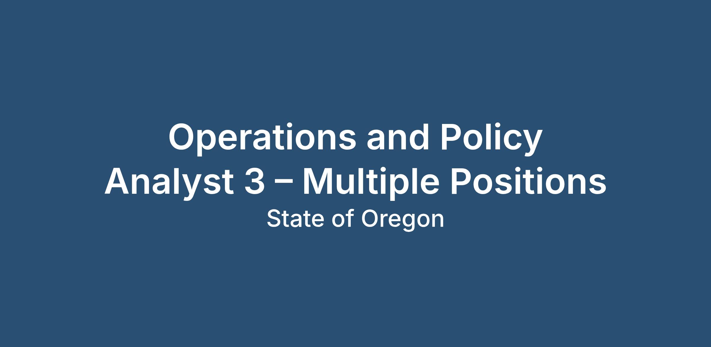 This announcement is for multiple, full-time, permanent, management service (MMN), Operations and Policy Analyst 3 positions based in Salem, Oregon.
