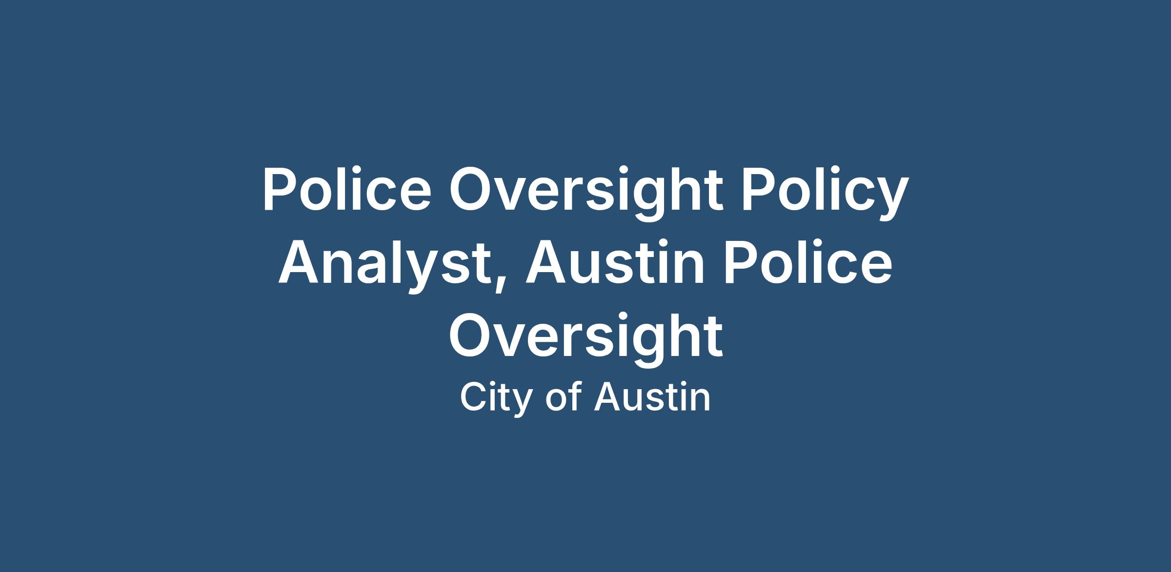 This is a research- and writing-heavy position that will require the ability to present complex findings to non-technical audiences. Applicants hired for this position will work with the Policy & Research Division of Austin Police Oversight (APO). Police Oversight Policy Analysts at APO utilize expertise in policy research and analysis methodologies to assess the Austin Police Department’s current policies, practices, and training and inform recommendations for improvement.