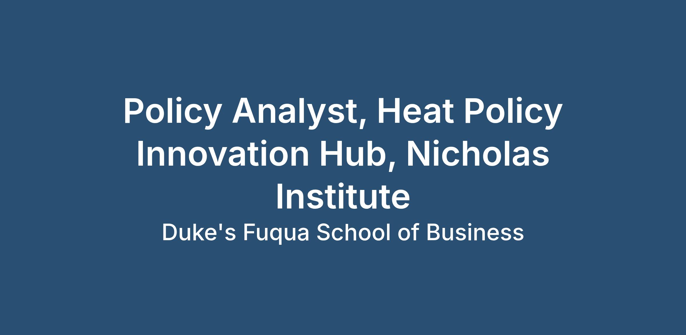 At Duke, we celebrate individuality and the unique perspectives that each member of our community brings. As the Policy Analyst with the Heat Policy Innovation Hub (HPIH), you’ll be part of the Nicholas Institute for Energy, Environment & Sustainability, which advances Duke University’s commitment to sustainability and resilience through research, education, and policy engagement.