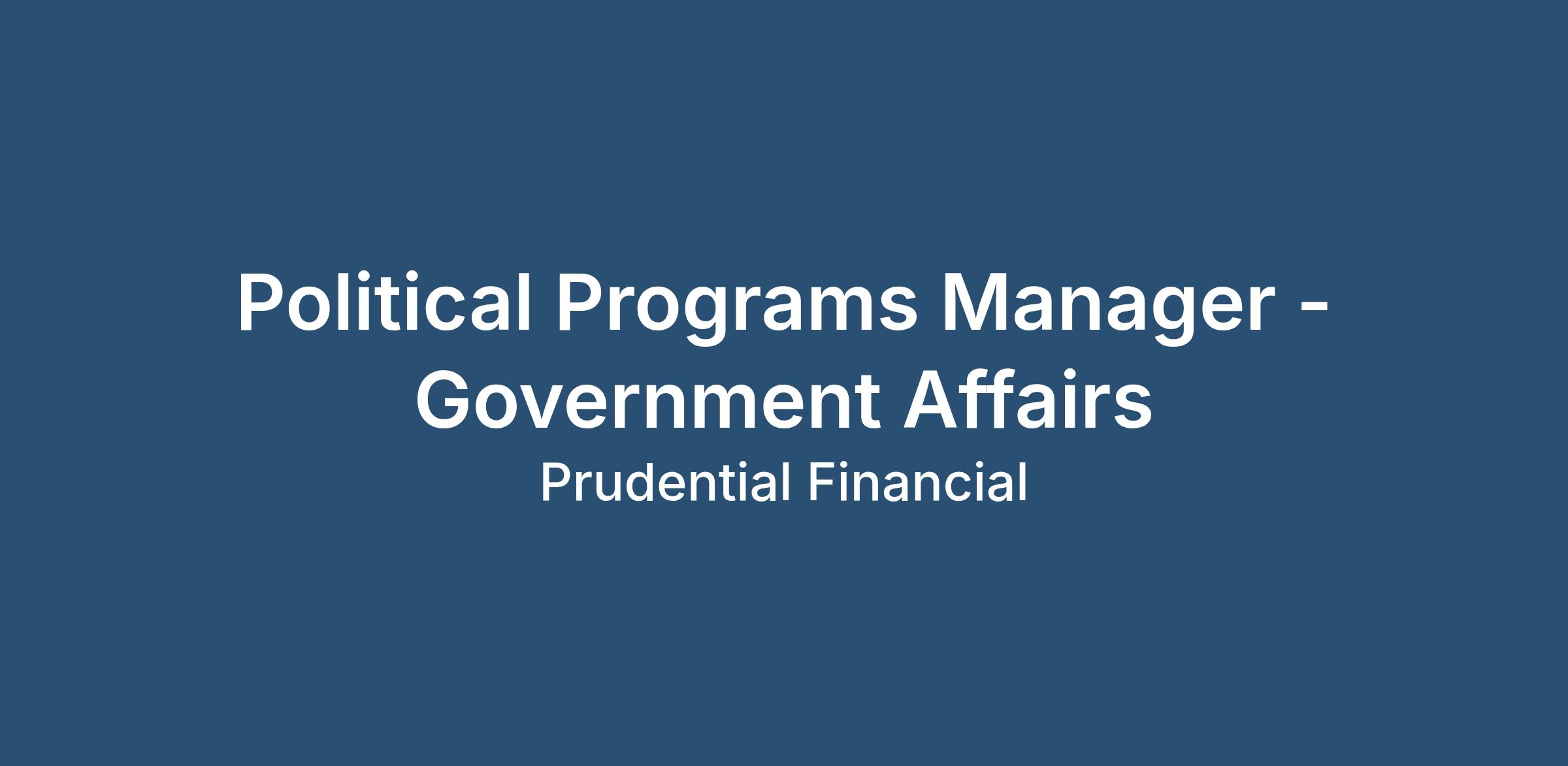 Our Government Affairs team (External Affairs) is seeking a Political Programs Manager primarily responsible for administering, maintaining, and growing Prudential’s political action committees.