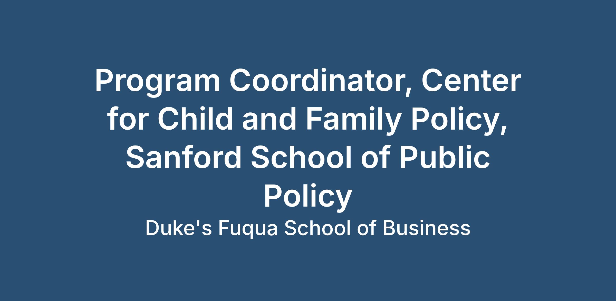 At Duke, we celebrate individuality and the unique perspectives that each member of our community brings. As the Program Coordinator, you’ll be a vital part of a collaborative, interdisciplinary team that supports major Center initiatives, research activities, student programs, and operational excellence across the Center for Child and Family Policy.